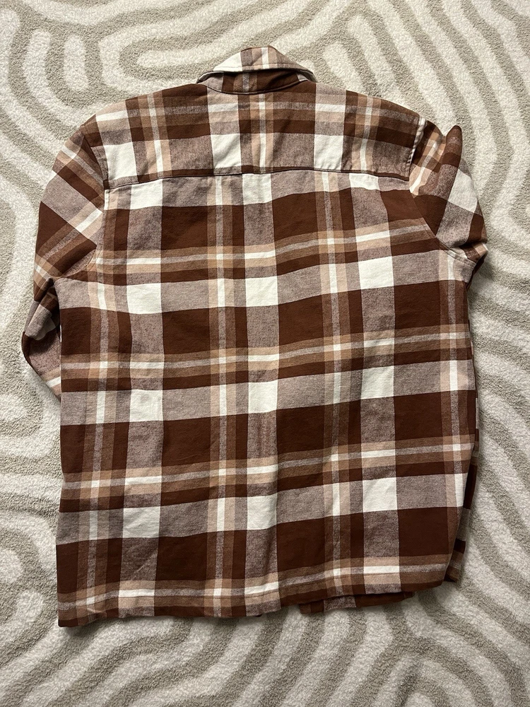 Elevate your wardrobe with this stylish TOPMAN flannel shirt in a rich brown plaid pattern. The heavy overshirt features a button-up closure with a spread collar and long sleeves, making it perfect for travel, casual outings, or workwear. The shirt is made of comfortable cotton fabric and has a regular fit, ensuring a classic and timeless look. This button-up shirt has various features, including easy care, thermal, and breathable, making it an ideal choice for the winter, fall, and spring seasons. It also has pockets for convenience and is machine washable. The shirt is designed for men, with a chest size of 46 inches and size type of regular. The shirt is perfect for outdoor and classic themes and is made in India.