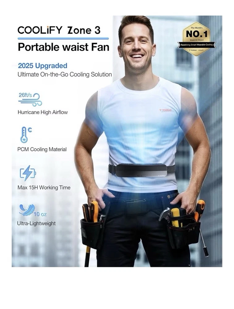 C24 The TORRAS Coolify Zone 3 2025 Portable Waist Fan is a compact, rechargeable wearable fan that provides personal cooling for outdoor activities. With a power source of 2 Lithium Polymer batteries (included), this fan operates at 6.5 watts and features a stylish black design. Its free-standing mounting type and casual style make it suitable for on-the-go use, while its matte finish adds a sleek touch. The TORRAS Coolify Zone 3 2025 is designed for 2025 outdoor enthusiasts looking for a convenient and effective cooling solution.