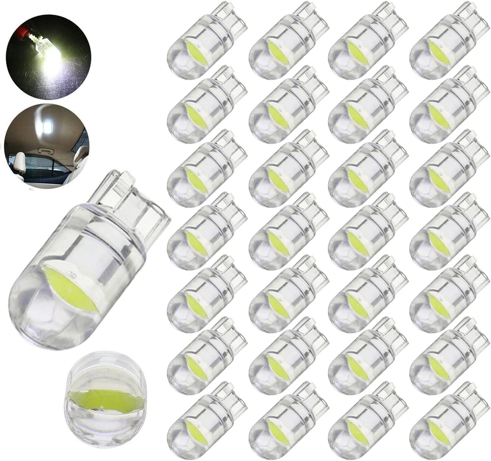Store New Arrivals Add to Favorite View Feedback Contact TORYOR 194 LED Light Bulb White 6000K Pack of 30, 168 2825 W5W T10 Wedge COB Description Item model number KZ04182-3 Item Package Quantity 1 Light Source Type LED Color Temperature 6000 Kelvin Color WHITE-30PCS Mirror Lighting Type automotive-exterior-license-plate-light-bulbs Brand LETINGFAR Wattage 5 watts Fit Type Universal Fit Manufacturer Part Number T10 COB 30PCS WHITE Specific Uses For Product Door Light,License Plate Light,Indicator Light,Interior Light Item Weight 1.44 ounces OEM Part Number Led automotive light bulbs ,Fits T10 wedge base,158 161 168 168A 168NA 175 194 194NA 2821 2825 2827 147 152 159 184 280 285 447 464 555 558 585 655 656 657 906 912 921 1250 1251 1252 2450 2652 292 2886X 3652 558 658 PC168 PC175 PC194 PC195 W5W W5WB W5WLL 124 160 161B 192 193 194A 194B 194G 194NAK 194R 195 2825L PC160 PC161 PC168B PC194G PC195NA W10W license plate lights, interior lights of map light, dome light, trunk lights, glove box lights, vanity mirror light, courtesy lights, interior door lights replacement for automotive cars, trucks, SUVs, Vans, Boats. etc. Voltage 12 Volts Auto Part Position Rear, Front Special Features Automotive-exterior-side-clearance-marker-light-bulbs, Automotive-interior-courtesy-step-light-bulbs, Automotive-interior-dome-light-bulbs, Automotive-exterior-combination-parking-and-side-marker-light-bulbs, Automotive-exterior-combination-turn-signal-and-fog-light-bulbs, Automotive-exterior-turn-signal-light-bulbs, Automotive-exterior-license-plate-light-bulbs, Automotive-exterior-back-up-light-bulbs, Automotive-exterior-top-clearance-marker-light-bulbs, Automotive-interior-glove-box-light-bulbs, Automotive-engine-compartment-under-hood-light-bulbs, Automotive-exterior-parking-light-bulbs, Automotive-instrumentation-clock-light-bulbs Package Dimensions 5.28 x 3.94 x 0.83 inches Manufacturer TORYOR 30pcs 194 led bulbs, Canbus LED bulb, Fitment: The 194 LED bulb is ideal replacement for all T10 wedge type: T10, 194, 168, 921, 147, 152, 158, 159, 161,168,175, 192, 193, 184, 259, 280, 285, 447, 464, 501, 555, 558, 585, 655, 656, 657, 1250, 1251, 1252, 2450, 2652, 2921, 504, 2821, 2825, 2827, 12256, 12961, M158, M155, 3652LL, 194NALL, 194ST, PC175, 168A, 194LL, 2886X, 175, pc195, 658, 912, W5W,etc. High Brightness :The T10 LED 194 bulb built in high precision fiber glass circuit board, fast heat dissipation. 360 degree lighting angle, no blind spot, bright but not dizzying, 300 percent brighter than original halogen bulbs. Super bright LED bulbs ensure safe night driving. Plug and Play: 194 led bulb canbus error free & Non-polarity,The T10 LED bulb is almost same size as halogen bulbs. easy installation. built in constant current IC driver, the 194 led bulbs no error, no extra decoder needed, no error after installation for 99 percent vehicles. Non-polarity design Long :These T10 194 W5W 168 white led bulbs are built-in constant current drive and external aluminum alloy radiator, Current stability, Fast heat dissipation, Extend the LED bulb service life. 194 led automotive interior light bulbs can be used for license plate light, dome light, map light, front/rear side marker light, trunk cargo light, turn signal light, courtesy step light, glove box light, inner tail light bulb, etc. Buy with Confidence :1 year no hassle service on return or refund for our products to make your purchase without risk. Any question, feel free to contact us. We are glade to provide 100 percent satisfaction solution for you. Oem equivalent part number: ?Led automotive light bulbs ,Fits T10 wedge base,158 161 168 168A 168NA 175 194 194NA 2821 2825 2827 147 152 159 184 280 285 447 464 555 558 585 655 656 657 906 912 921 1250 1251 1252 2450 2652 292 2886X 3652 558 658 PC168 PC175 PC194 PC195 W5W W5WB W5WLL 124 160 161B 192 193 194A 194B 194G 194NAK 194R 195 2825L PC160 PC161 PC168B PC194G PC195NA W10W license plate lights, interior lights of map light, dome light, trunk lights, glove box lights, vanity mirror light, courtesy lights, interior door lights replacement for automotive cars, trucks, SUVs, Vans, Boats. etc. Special features: ?Automotive-exterior-side-clearance-marker-light-bulbs, Automotive-interior-courtesy-step-light-bulbs, Automotive-interior-dome-light-bulbs Part number: T10 COB 30PCS WHITE Compatible with vehicle type: ?License plate light, Dome light, 168 led bulb, 194 led bulb,T10 led bulb,158 led bulb, Map light, 2825 led bulb,w5w led bulb, 7443 led bulb Passenger Car, Bus, SUV, Motorcycle, Scooter, Truck, Trailer, Boat The T10 W5W 168 192 194 bulb LED to upgrade your standard halogen bulb. 360-degree lighting angle and high light output, no visual blind, bring you a bright and comfortable lighting experience. The 194 LED bulbs are CAN-BUS error free, no extra decoder needed, just plug and play, no error after installation. Comparable to OEM sized halogen bulbs and fit directly into multiple bulb size sockets such as: 168 175 194 2825 912 921 W5W T10 etc. These led t10 bulbs are used for license plate tag lights, map lights, dome lights,trunk cargo room lights, side door courtesy lights,marker lights, reading lights, glove box lights etc. Is ideal 194 bulb led replacement. Super Bright 194 led bulbs white extremely super bright, 300% brighter than stock lamps.t10 led bulb 6000k, 360° full angles light output. No blind spot. surrounding light. Good focus. No dazzling. Easy Installation Standard 194 LED Bulb Socket, Plug and play as a direct replacement bulb for most vehicle. These 194 led bulbs will fit your housing easily and can be plugged directly into your original factory sockets in 10 mins. Interior Map Lights/Interior Dome Lights/Trunk/Cargo Room Lights /Exterior License Plate Lights:Direct fit the interior map lights bulbs with T10 wedge (bulb size like 194, 168, 2825, W5W, 175, 161,921, 912, etc) for cars, trucks, SUVs, boats, Vans, etc High illumination & high performance of pure cool white color, enhance much