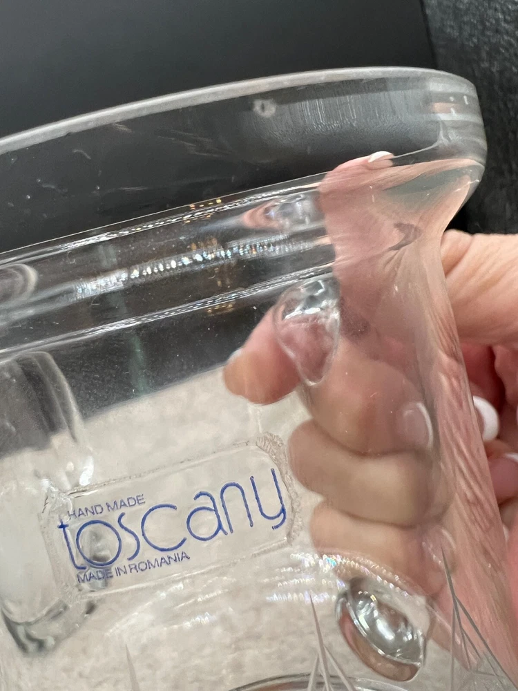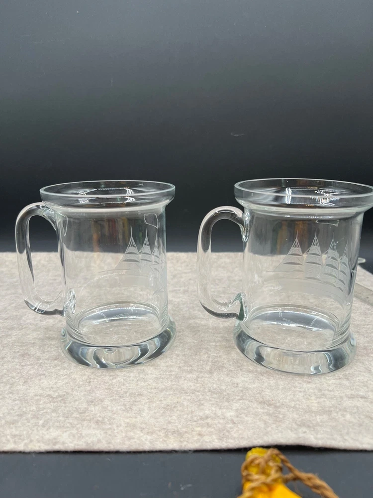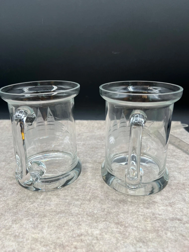 Elevate your barware collection with the TOSCANY Crystal Clipper Mugs, a luxurious addition that blends functionality with a nautical aesthetic. Each 4 1/2" stein is meticulously handcrafted from premium crystal glass, featuring an etched ship design that adds a touch of sophistication to your drinks experience. The round mugs have a 3 1/2" diameter and hold up to 16 ozs, ideal for enjoying your favorite spirits. Crafted with precision, these mugs are a testament to the artistry of hand-blown glass. The clear crystal, combined with the intricate etching, makes each piece a unique work of art. Designed in Romania, the mugs are not just glasses but treasured keepsakes. To maintain their elegance, hand washing is recommended. Add these contemporary originals to your collection and indulge in the luxury of Toscany craftsmanship. set of 2