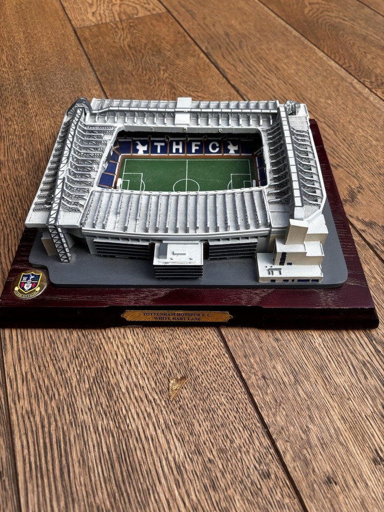The TOTTENHAM HOTSPUR WHITE HART LANE Replica football stadium is a must-have for fans of the Tottenham Hotspur football club. This replica stadium is a perfect addition to any fan's collection, featuring intricate details and design inspired by the iconic White Hart Lane stadium. Whether you're a die-hard Tottenham Hotspur supporter or simply a football enthusiast, this replica stadium is sure to be a prized possession for you to showcase your love for the club. Only 3 defects on the top with a slight chipping but nothing massively noticeable