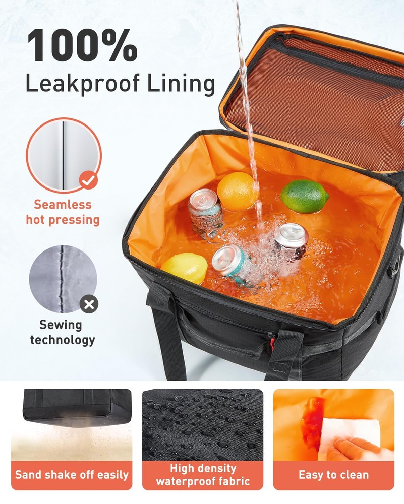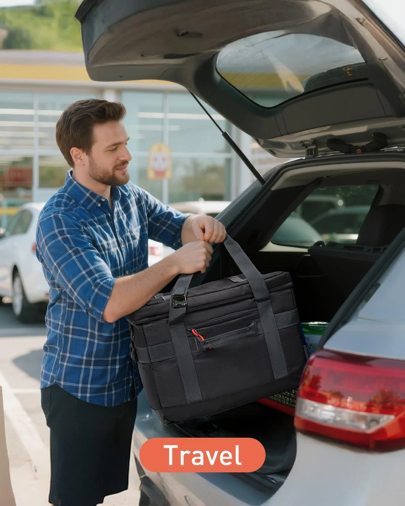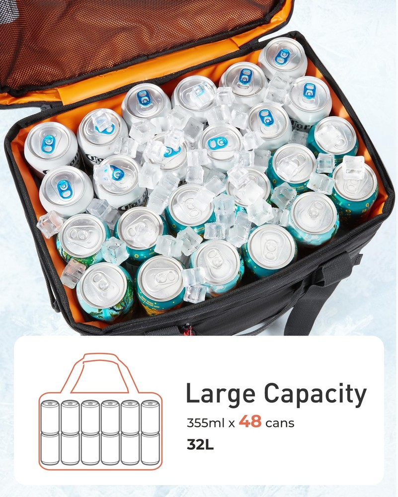 TOURIT Insulated Collapsible Cooler Bag, 48-Can 32L Large 48can/32L, Black Description Features: Large Capacity: Cooler bag can hold a volume of 32L (8.4 Gallons). Make you can bring 48 cans(355ml)of your favorite drink. Overall dimensions approximately 16 ½ x 11 ½ x 10 ¼ inch / 42 x 26 x 29 cm and weight 700g. It is perfect for beaches, camping, hiking, etc Long-term Cooling Time: The main compartment uses high-density insulating materials and waterproof materials to work together to ensure that the food or drinks stay cool for up to 12 hours! Keeps your food and beverages cool longer. 100 % Leak-proof: The inner lining is made of waterproof high-frequency material PEVA, which is high-density and waterproof. Easy to clean. The exterior is made of high-density Oxford cloth and checked cloth, which is firm and wear-resistant, not easy to tear. Multiple Carrying: Designed with a padded handle and a detachable shoulder strap, provide various ways of carrying methods, free to choose to carry by hand or with a shoulder strap. Equipped with a front pocket and two mesh pockets for easy storage of items. With a bottle opener, allowing you to enjoy a cool drink anywhere! Collapsible Cooler Bag & Versatile Use: An elastic rope on the top of the cover, which can put towels and other daily necessities or you can use it to fold the bag up easily to save space when not in use. Large capacity with a longer time insulated, and can also be filled with various snacks and lunches. It is an ideal companion for you to travel or go to work. Product Details: Handling We will ship all orders within 1 business day of payment. Delivery We Do Not Ship Outside of the Continental US. Return Policy All items qualify for returns within 30 days of receipt. Buyer is responsible for return shipping on any item that is not damaged. Feedback We take our reputation seriously, we buy and sell online, so we understand the value of trust. If you are unsatisfied with your order, please contact us and we will work with you to resolve it to your satisfaction.