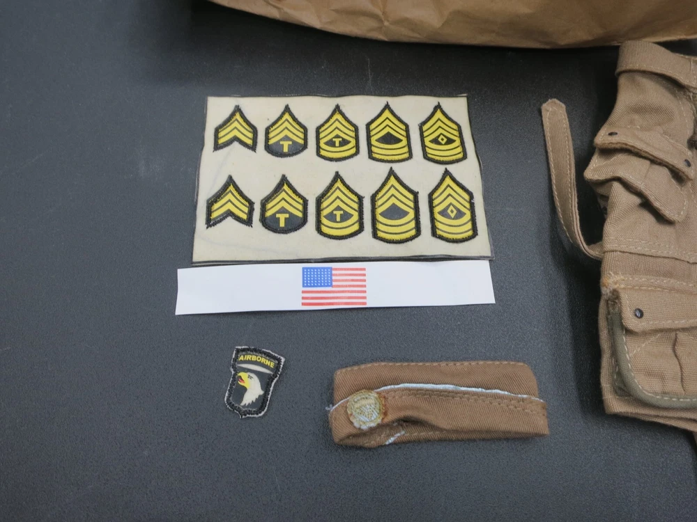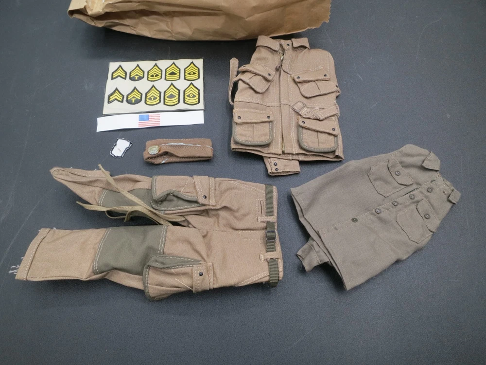 Size: 12in. Recommended Age Range: 14+ Character Family: WWII USA Accessory Type: Uniform Material: Fabric Type: Accessories Packaging: Original (Unopened) Theme: Military & Adventure Scale: 1:6 Brand: Toy Soldier & Workshop Color: Tan UPC: Does not apply gtin13: Does not apply