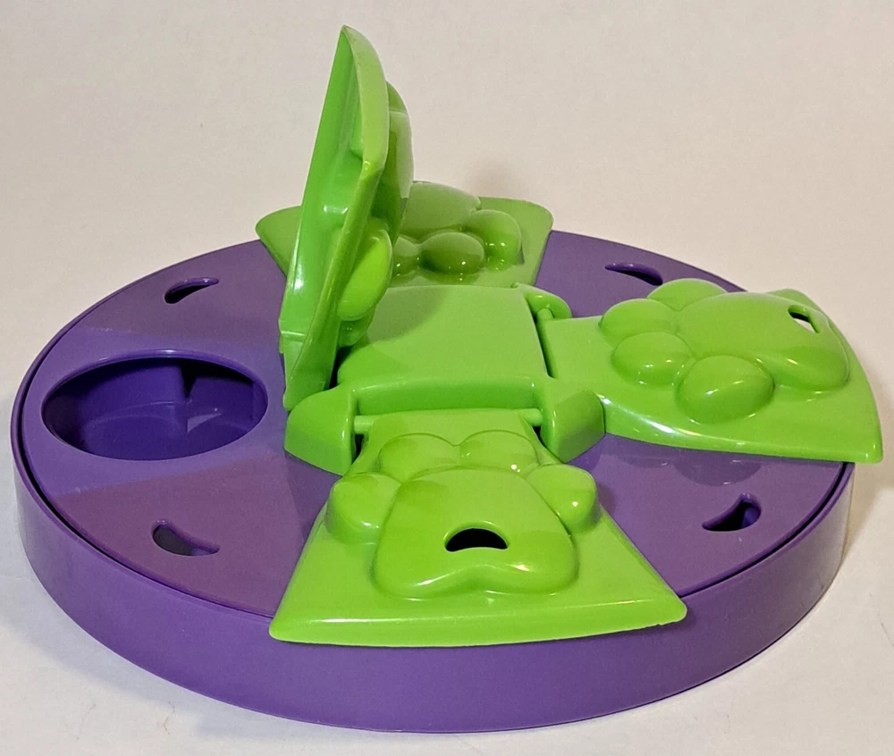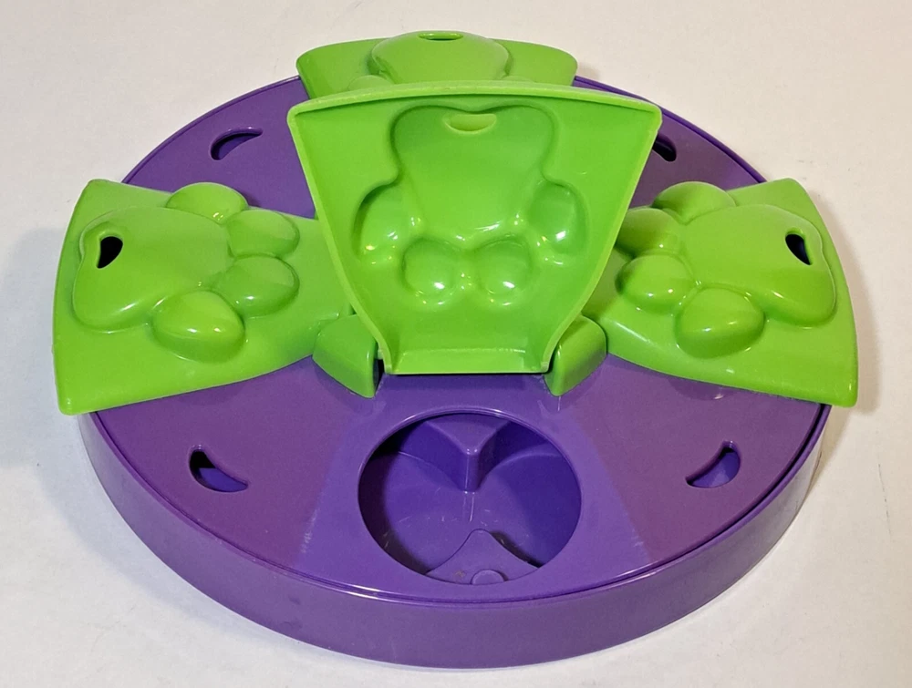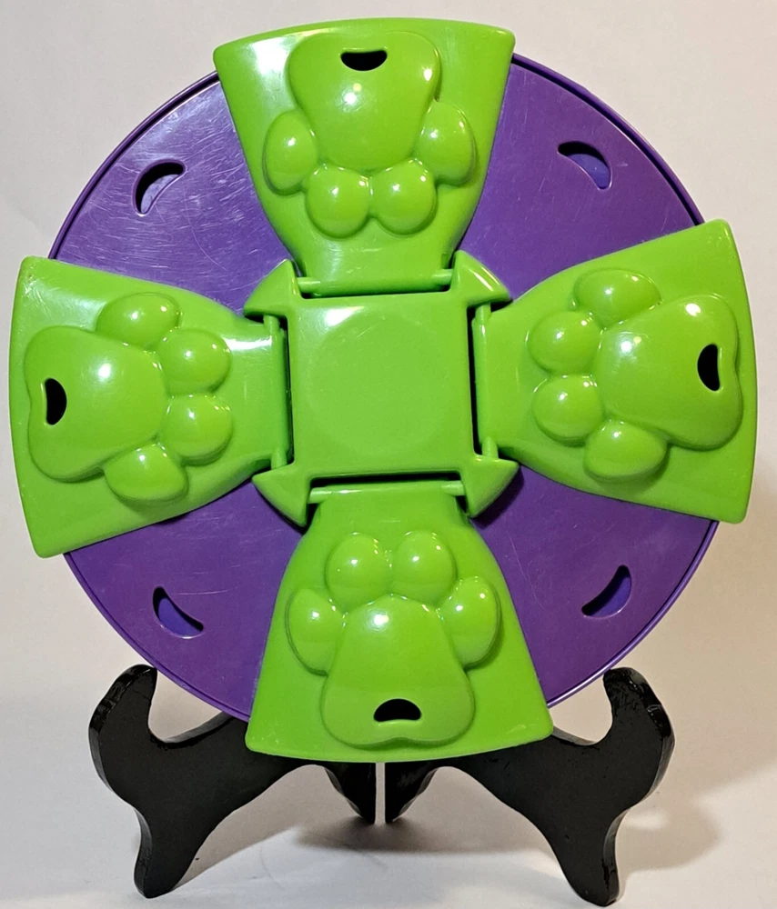 The Top Paw Treat Puzzle Game from Toys R Us Pets is an interactive toy made of plastic that dispenses treats. Dogs can enjoy hours of mental stimulation and entertainment by working to access the hidden treats within the puzzle game. This toy is designed to keep dogs engaged and challenged, providing both physical and mental exercise in a fun and rewarding way.
