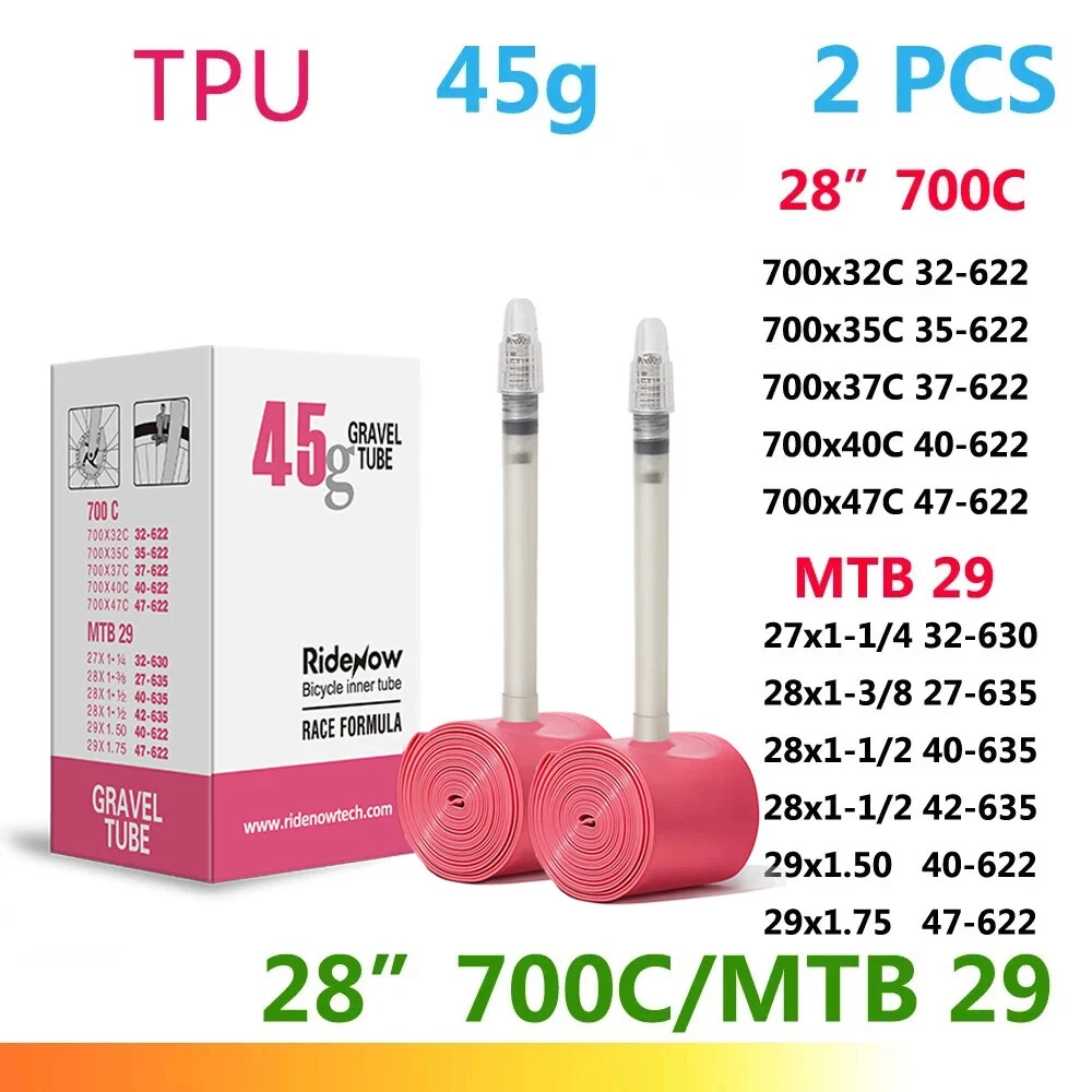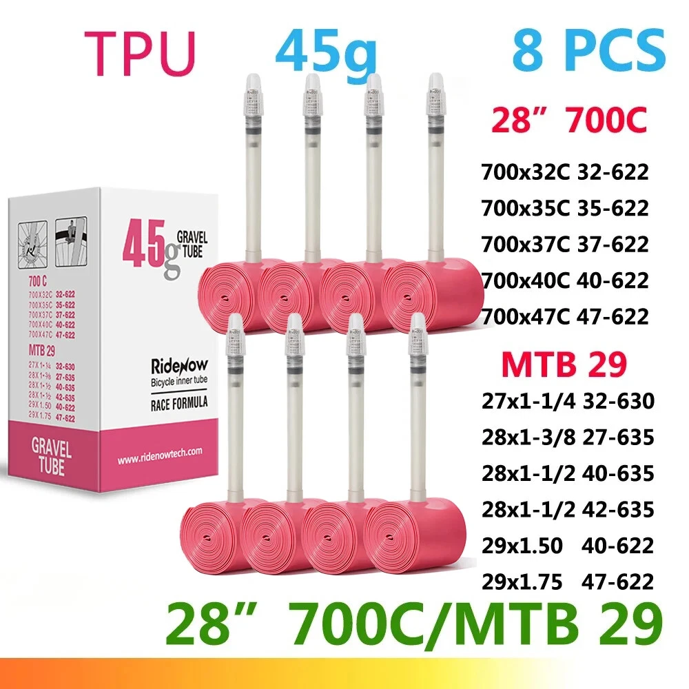 We offer discount for large quantity. Welcome to contact with us! TPU(Thermoplastic polyurethane): the newest technological advance in bicycle inner tubes – as the fastest rolling, the most durable, and the lightest weight. It also appears to be more sustainable as it requires less raw material and is readily recyclable. High-Strength: It offers durability and wear resistance, extending its lifespan for different road conditions. Fastest Speed: With superior rolling resistance compared to butyl and latex inner tubes, it entices a faster and more exhilarating ride. Safe and not easy to burst: The special new TPU material has excellent resistance to puncture.Seamless construction, with a mold-cured vulcanization, to ensure uniform roundness and give a smooth ride and handling. Good airtightness : The bike inner tube is equipped with a high airtightness 45mm/65mm/85mm French /Schrader nozzle, which will not leak and can be used for half a year with one inflation. This inner tube cannot be inflated a lot when it is not installed in the outer tire, otherwise it will cause irreversible damage! Please use a manual air pump instead of high-speed air filling equipment such as air compressors or pumps. Before inflating the RideNow tube, turn the valve inward (towards the center of the tire circle). Inflate a small amount until the inner tube is round; this pressure should be less than 0.5 bar/8 PSI. If the vacant inflation exceeds 6PSI, the inner tube will expand beyond repair! Please install according to the product manual in detail