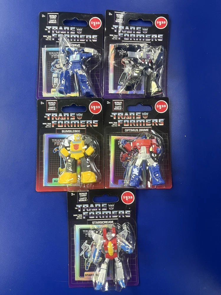 Get ready to add this amazing set of Transformer mini figures to your collection! The set includes five figures of beloved characters from the franchise, including Bumblebee, Soundwave, Starscream, BUBBLEBEE, Optimus Prime, and Megatron. Each figure stands at 2.5 inches tall and is made by Hasbro, ensuring high quality and attention to detail. These vintage figures are from the TRANSFORMERS TV/streaming show and are perfect for any fan of the action and adventure theme. The set is a must-have for collectors and is sure to impress. Don't miss out on this opportunity to own a piece of Transformer history!