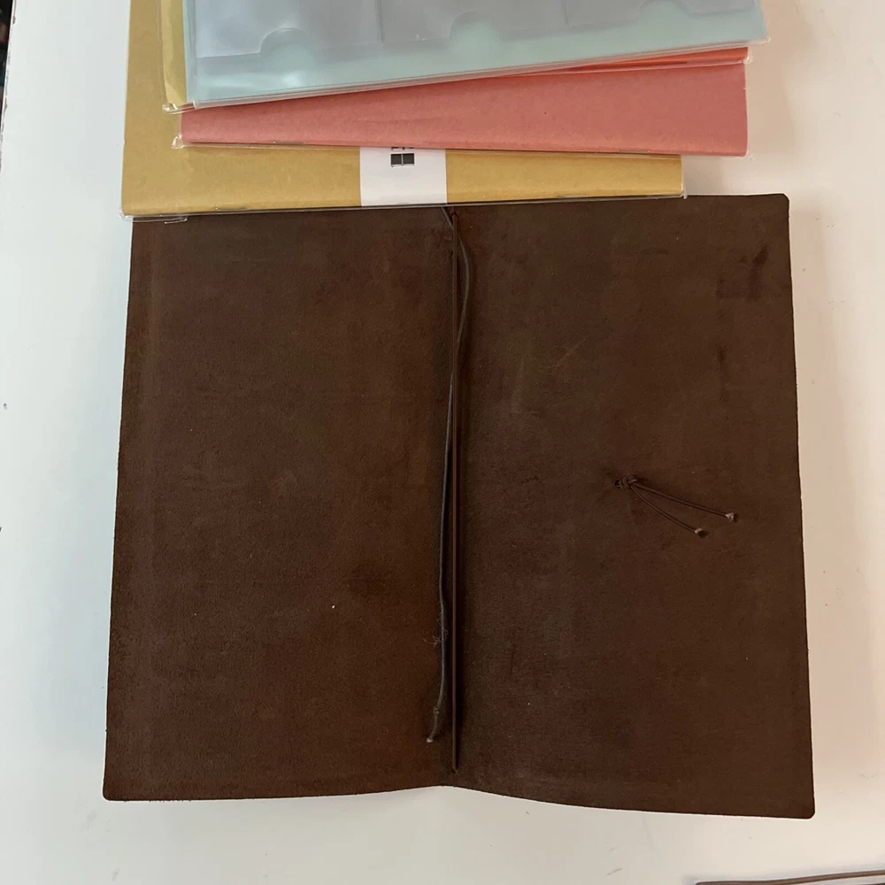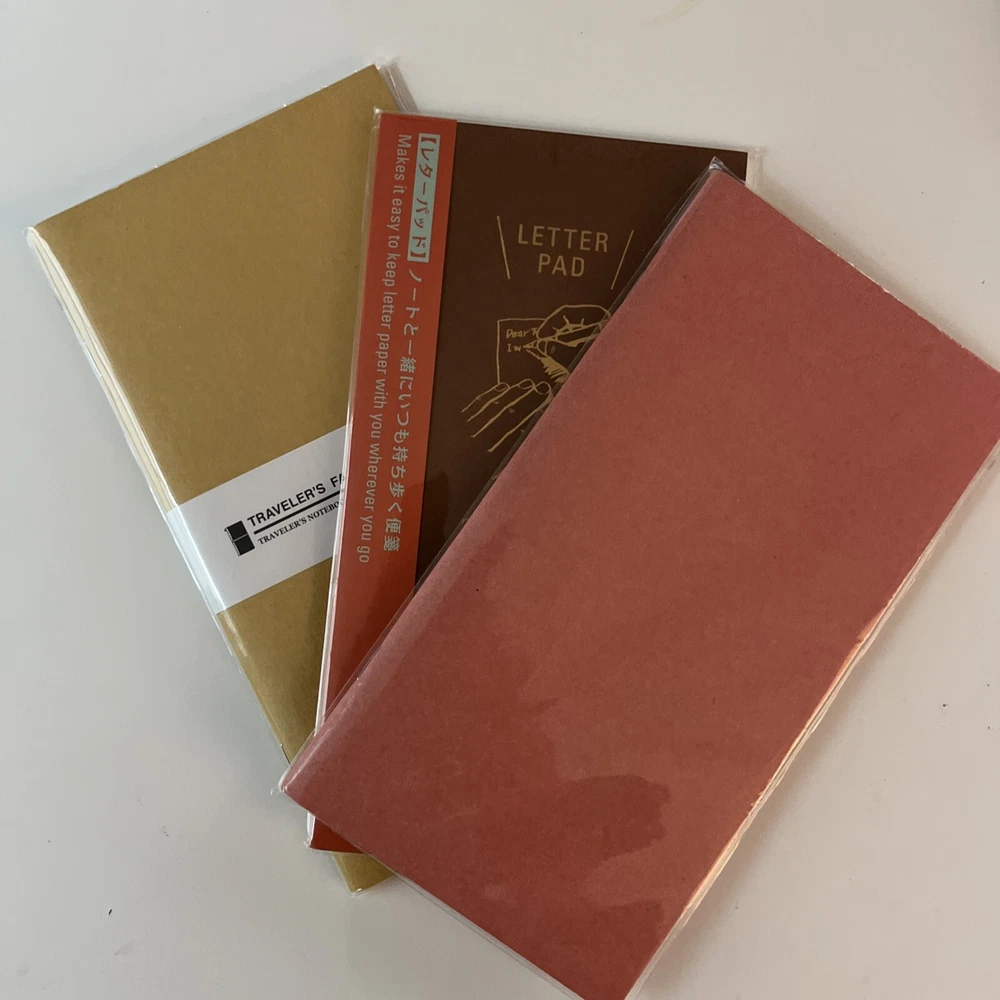 3 new inserts from travelers company 023 and plastic card folder are used Camel pen clip is used 2 rubber bands and 2 brass clips