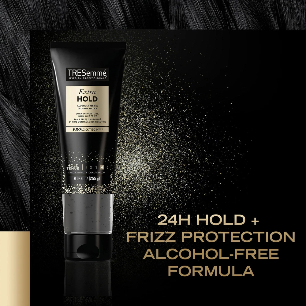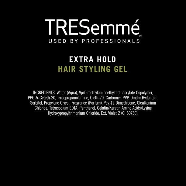 Product Description Tresemme Tres Two, Gel Extra Firm Control, Extra Hold, #4 Hair Styling Gel, 9 Ounce (Pack Of 10) TRESemme Extra Hold Frizz Control Hair Styling Gel, The best styling gel should hold your style without causing a sticky situation. TRESemme Extra Hold Hair Gel delivers all-day-long humidity resistance and keeps your style going strong without ever feeling stiff or sticky. After you put the work into your style, you better lock it in before you lose it. Built for control and ready to be styled, this Extra Hold Gel fights frizz all day long with 24-hour humidity protection, while continuously holding your style in place. This hair styling gel can be used on any hair type, as a curly hair gel or to lock in your wavy styles. Our unique, alcohol-free hair gel formula is great for all hair types and designed to add lasting shine to your style. Step 1: Prep your hair with your favorite TRESemme shampoo and conditioner. Step 2: Start by dispensing a quarter-sized drop of TRESemme Extra Hold Hair Gel into your hands and use fingers to evenly coat towel-dried hair, creating your preferred style. Add more hair styling products as needed. TRESemmé Extra Hold Frizz Control Hair Styling Gel, 9 oz MEGA HOLD HAIR GEL: TRESemmé Extra Hold Hair Gel adds long-lasting shine and firm hold without leaving hair looking sticky or wet ANTI-FRIZZ GEL: This alcohol-free hair styling gel delivers all-day control with humidity resistance to help keep frizz away LOCK IN YOUR STYLE: TRESemmé Extra Hold Hair Gel for women will keep you in control and your hair game strong TREND LED, RIGOROUSLY TESTED: Ingredients in this hair gel are carefully selected to ensure your hair receives the best possible care. We don't test on animals & are PETA Approved HAIR CARE TIPS FROM OUR STYLISTS: Dispense a quarter-size drop into your hands and use your fingers to evenly coat damp hair, creating your desired style. Add more gel as needed EXTRA HOLD HAIR GEL: This gel is a professional-quality clean-feel styling gel that doesn’t dry out your hair. It delivers all-day control with humidity resistance to help keep frizz away NO CRUNCH: Our alcohol-free hair gel adds long-lasting shine and firm hold without leaving hair looking sticky PROTECT HAIR WHILE USING HAIR DRYER, STYLING TOOLS & APPLIANCES: Apply hair gel before using your hair dryer, styling tools & appliances to protect hair from damaging heat while defining your hair style with an extra hold hair gel. VITAMIN B 5 FOR VOLUME AND SHINE: Hair will appear healthy, thicker, with more volume and shine thanks to the Vitamin B 5 in this Extra Hold hair gel. FRIZZ CONTROL IN HIGH HUMIDITY: Frizz control hair gel with extra hold lets you rock your hairstyle and curly hair with confidence without worrying about the humid weather. HOW TO APPLY: Dispense a quarter-sized drop of Extra Hold hair gel into hands. Use fingers to evenly coat towel-dried, clean hair, and work into your preferred style. Add more product if needed. Use your hair dryer or air-dry. MORE THAN HAIR PRODUCTS: TRESemmé is committed to advancing the next generation of female leaders by creating an intentional momentum forward. Find out more about how at #WomenLeadTheWay. Inactive Ingredients Water (Aqua) Vp/Dimethylaminoethy|methacrylateCopolymer PPG-5-Ceteth-20 Trisopropanolamine Oleth-20 Carbomer PVP Dmdm Hydantoin Sorbitol Propylene Glycol Fragrance (Parfum) Peg-12 Dimethicone Olealkonium Chloride Tetrasodium EDTA Panthenol Gelatin/Keratin Amino Acids/Lysine Hydroxypropyltrimonium Chloride Ext. Violet 2 (Ci 60730). Ingredients Water (Aqua), Vp/Dimethylaminoethy|methacrylateCopolymer, PPG-5-Ceteth-20, Trisopropanolamine, Oleth-20, Carbomer, PVP, Dmdm Hydantoin, Sorbitol, Propylene Glycol, Fragrance (Parfum), Peg-12 Dimethicone, Olealkonium Chloride, Tetrasodium EDTA, Panthenol, Gelatin/Keratin Amino Acids/Lysine Hydroxypropyltrimonium Chloride, Ext. Violet 2 (Ci 60730). Active Ingredients NA