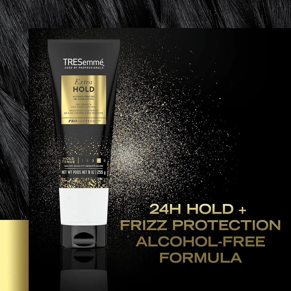 Product Description Tresemme Tres Two, Gel Extra Firm Control, Extra Hold, #4 Hair Styling Gel, 9 Ounce (Pack Of 8) TRESemme Extra Hold Frizz Control Hair Styling Gel, The best styling gel should hold your style without causing a sticky situation. TRESemme Extra Hold Hair Gel delivers all-day-long humidity resistance and keeps your style going strong without ever feeling stiff or sticky. After you put the work into your style, you better lock it in before you lose it. Built for control and ready to be styled, this Extra Hold Gel fights frizz all day long with 24-hour humidity protection, while continuously holding your style in place. This hair styling gel can be used on any hair type, as a curly hair gel or to lock in your wavy styles. Our unique, alcohol-free hair gel formula is great for all hair types and designed to add lasting shine to your style. Step 1: Prep your hair with your favorite TRESemme shampoo and conditioner. Step 2: Start by dispensing a quarter-sized drop of TRESemme Extra Hold Hair Gel into your hands and use fingers to evenly coat towel-dried hair, creating your preferred style. Add more hair styling products as needed. TRESemmé Extra Hold Frizz Control Hair Styling Gel, 9 oz MEGA HOLD HAIR GEL: TRESemmé Extra Hold Hair Gel adds long-lasting shine and firm hold without leaving hair looking sticky or wet ANTI-FRIZZ GEL: This alcohol-free hair styling gel delivers all-day control with humidity resistance to help keep frizz away LOCK IN YOUR STYLE: TRESemmé Extra Hold Hair Gel for women will keep you in control and your hair game strong TREND LED, RIGOROUSLY TESTED: Ingredients in this hair gel are carefully selected to ensure your hair receives the best possible care. We don't test on animals & are PETA Approved HAIR CARE TIPS FROM OUR STYLISTS: Dispense a quarter-size drop into your hands and use your fingers to evenly coat damp hair, creating your desired style. Add more gel as needed EXTRA HOLD HAIR GEL: This gel is a professional-quality clean-feel styling gel that doesn’t dry out your hair. It delivers all-day control with humidity resistance to help keep frizz away NO CRUNCH: Our alcohol-free hair gel adds long-lasting shine and firm hold without leaving hair looking sticky PROTECT HAIR WHILE USING HAIR DRYER, STYLING TOOLS & APPLIANCES: Apply hair gel before using your hair dryer, styling tools & appliances to protect hair from damaging heat while defining your hair style with an extra hold hair gel. VITAMIN B 5 FOR VOLUME AND SHINE: Hair will appear healthy, thicker, with more volume and shine thanks to the Vitamin B 5 in this Extra Hold hair gel. FRIZZ CONTROL IN HIGH HUMIDITY: Frizz control hair gel with extra hold lets you rock your hairstyle and curly hair with confidence without worrying about the humid weather. HOW TO APPLY: Dispense a quarter-sized drop of Extra Hold hair gel into hands. Use fingers to evenly coat towel-dried, clean hair, and work into your preferred style. Add more product if needed. Use your hair dryer or air-dry. MORE THAN HAIR PRODUCTS: TRESemmé is committed to advancing the next generation of female leaders by creating an intentional momentum forward. Find out more about how at #WomenLeadTheWay. Inactive Ingredients Water (Aqua) Vp/Dimethylaminoethy|methacrylateCopolymer PPG-5-Ceteth-20 Trisopropanolamine Oleth-20 Carbomer PVP Dmdm Hydantoin Sorbitol Propylene Glycol Fragrance (Parfum) Peg-12 Dimethicone Olealkonium Chloride Tetrasodium EDTA Panthenol Gelatin/Keratin Amino Acids/Lysine Hydroxypropyltrimonium Chloride Ext. Violet 2 (Ci 60730). Ingredients Water (Aqua), Vp/Dimethylaminoethy|methacrylateCopolymer, PPG-5-Ceteth-20, Trisopropanolamine, Oleth-20, Carbomer, PVP, Dmdm Hydantoin, Sorbitol, Propylene Glycol, Fragrance (Parfum), Peg-12 Dimethicone, Olealkonium Chloride, Tetrasodium EDTA, Panthenol, Gelatin/Keratin Amino Acids/Lysine Hydroxypropyltrimonium Chloride, Ext. Violet 2 (Ci 60730). Active Ingredients NA