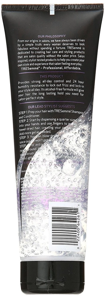 Product Description Tresemme Tres Two, Mega Control, Hair-Gel, for 24-Hour, Frizz Control #5, 9 Ounce (Pack Of 3) TRESemmé Mega Frizz Control Hair Styling Gel, Need a styling gel that delivers mega hold without feeling stiff or sticky? TRESemme Mega Control Hair Gel provides all-day resistance to humidity and keeps your style going strong without crunchy stiffness. After you put the work into your style, you better lock it in before you lose it. Sprays work best to lock in some styles, but when you're aiming for a sleek, tight look, you should use a styling hair gel for extra hold and humidity control. Built for control and ready to be styled, TRESemme Mega Control Hair Gel is an anti-frizz gel, giving you all-day hold with built-in 24-hour humidity protection. This mega control hair gel is perfect for slicking, shaping, or sculpting hair for that perfect look. Our unique, alcohol-free hair gel formula is great for all hair types and designed to keep your hairstyle on lock without leaving hair looking wet or feeling sticky. Step 1: Prep your hair with your favorite TRESemme shampoo and conditioner and hair styling products. TRESemmé Mega Frizz Control Hair Styling Gel, 9 oz MEGA FIRM STYLING HAIR GEL: TRESemmé Mega Control Hair Gel is a styling gel that adds long-lasting shine and mega hold to your hair for all-day control ANTI-FRIZZ GEL: This alcohol-free hair styling gel delivers all-day control with humidity resistance to help keep frizz away MAXIMUM HOLD: TRESemmé Mega Control Hair Gel is a stiff hair gel that locks in your style without ever looking sticky or wet TREND LED, RIGOROUSLY TESTED: Every ingredient is carefully selected to ensure your hair receives the best possible care. We do not test on animals and our hair products are PETA-approved HAIR CARE TIPS FROM OUR STYLISTS: Dispense a quarter-size drop into your hands and use your fingers to evenly coat damp hair, creating your desired style. Add more gel as needed FRIZZ FREE: Formulated with coconut oil, this formula gives all-day hold and 24-hour humidity resistance for resilient styles ALL-DAY HOLD: Level 5 hold, our strongest hold hair gel, is Infused with coconut oil. Achieve moisturized hair without compromising on hold CRUELTY-FREE: TRESemmé prohibits animal testing for our hair products and the ingredients used in them, anywhere in the world DO IT WITH STYLE: With professional quality hair products like our Mega Control Alcohol-Free Gel, you can confidently create your personal style Super firm control. Resistance To Lock Out Frizz And Lock In Style All Day Holds For 24 Hours In High Humidity Mega Firm Control For All Hair Types Product Benefits Humidity Resistant, Frizz Control Hair Type Curly Material Type Free Mineral Oil Free, Sulfate Free, Alcohol Free, Aluminum Free, Formaldehyde Free Scent Unscented Liquid Volume 9 Fluid Ounces Ingredients WATER (EAU), VP/DIMETHYLAMINOETHYLMETHACRYLATE COPOLYMER, PPG-5-CETETH-20, PHENOXYETHANOL, TRIISOPROPANOLAMINE, OLETH-20, CAPRYLYL GLYCOL, CARBOMER, PVP, SORBITOL, FRAGRANCE (PARFUM), PROPYLENE GLYCOL, PEG-12 DIMETHICONE, DISODIUM EDTA, PANTHENOL, COCOS NUCIFERA (COCONUT) OIL, BENZYL ALCOHOL, CITRONELLOL, GERANIOL, HEXYL CINNAMAL, LIMONENE, LINALOOL, EXT. VIOLET 2 (CI 60730).