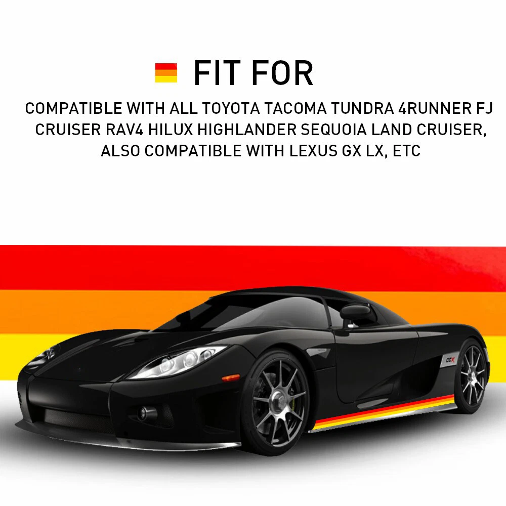 Fit for: Compatible with all Toyota Tacoma Tundra 4Runner FJ Cruiser RAV4 Hilux Highlander Sequoia Land Cruiser, Also compatible with Lexus GX LX, etc Specifications: Material: vinyl paper Color: Red, orange, yellow Placement on vehicle: Left and right sides Features: *Tri-Color stripe design makes your vehicle stand out and be recognized immediately. *Made with high-quality reflective KK vinyl paper with a glossy coating cover *Good for appearance decoration of your vehicle. *Easy installation with a direct replacement. Packaging include: TRI-COLOR Side Decal Stripes Rocker Vinyl Sticker Toyota For Tacoma Lexus US Fit for: Compatible with all Toyota Tacoma Tundra 4Runner FJ Cruiser RAV4 Hilux Highlander Sequoia Land Cruiser, Also compatible with Lexus GX LX, etc Specifications: Material: vinyl paper Color: Red, orange, yellow Placement on vehicle: Left and right sides Features: *Tri-Color stripe design makes your vehicle stand out and be recognized immediately. *Made with high-quality reflective KK vinyl paper with a glossy coating cover *Good for appearance decoration of your vehicle. *Easy installation with a direct replacement. Packaging include: TRI-COLOR DECAL STICKER*1 Item Specifics Features Easy Installation Self-Adhesive Waterproof Manufacturer Warranty 30 Day Other Part Number Side Skirt Stripe OE/OEM Part Number / Fitment Type Performance/Custom Item Length 71''/180cm Superseded Part Number Stripe Body Outdoor Decal Size 71''/180cm Material Vinyl Attachment Type Self-Adhesive Interchange Part Number Vinyl Graphic Side Skirt Door Car Decal Sticker Stripes Placement on Vehicle Left Rear Right Finish Glossy Gloss Brand AUXITO Color Black Type Fender Payment 1. We can only accept payment from PayPal. 2. Please keep the consistency of Paypal address and ebay address. Shipping 1. All items will be shipped in 12 hours after receiving your payment . 2. We ship this item to US only via USPS first class mail. It usually takes 3-5 working days to deliver. Returns 1. We offer 30 days return policy. 2. Please contact us within 30 days from the date you receive your package if you have any questions with the products . 3. Refund will be sent after we got your returned package. 4. All returned items should be in the original packaging with tracking number. Contact Us We work from Monday - Saturday 9:00AM - 6:00PM, but we will reply once we get your message. There will be delay on response if you send message or E-Mail on Sunday. DESCRIPTION PAYMENT SHIPPING RETURN POLICY CONTACT US Shop Category Store Home Other Hot Item Door Latch Cables LH+RH Front For 2007-2013 Chevy Silverado 1500 2500 HD 3500 HD USD 17.99 For 2002-2008 Dodge Chrysler Stereo Car Radio Wiring Harness Adapter USD 11.59 Set of Delco 4 AC Oxygen O2 for Sensor 2003-2005 Cadillac Chevrolet GMC V8 5.3L USD 50.99 Universal Car Windshield Wiper Squirter Washer Nozzle Spray Jet Kit Fluid Hose T USD 9.99 Rear Left or Right Outside Door Handle for 2010-2016 Toyota 4Runner Lexus GX460 USD 14.24 New List Item Door Handle Outside Beige Driver Front Side Left LH fits 1997-2001 Toyota Camry USD 14.99 Ignition Control Module for 92-96 Ford E150/250/350 Van F150/250/350 93-96 Truck USD 15.99 Soft Car Seat Full Covers Sethion Protector For 2009-2022 Ram 1500 2500 3500 USD 123.99 Set of 2 Bumper Front Bracket Side Cover Beam Plastic For 2013-2017 Honda Accord USD 13.99 For Lexus RX330 2004-2006 2007-2009 RX350 Rear Right RH Side Marker Bumper Light USD 23.99 Excellent Delivery TRI-COLOR Side Decal Stripes Rocker Vinyl Sticker Toyota For Tacoma Lexus US Fit for: Compatible with all Toyota Tacoma Tundra 4Runner FJ Cruiser RAV4 Hilux Highlander Sequoia Land Cruiser, Also compatible with Lexus GX LX, etc Specifications: Material: vinyl paper Color: Red, orange, yellow Placement on vehicle: Left and right sides Features: *Tri-Color stripe design makes your vehicle stand out and be recognized immediately. *Made with high-quality reflective KK vinyl paper with a glossy coating cover *Good for appearance decoration of your vehicle. *Easy installation with a direct replacement. Packaging include: TRI-COLOR DECAL STICKER*1 Payment Shipping Returns Contact Us 1. We can only accept payment from PayPal. 2. Please keep the consistency of Paypal address and ebay address. 1. All items will be shipped in 12 hours after receiving your payment . 2. We ship this item to US only via USPS first class mail. It usually takes 3-5 working days to deliver. 1. We offer 30 days return policy. 2. Please contact us within 30 days from the date you receive your package if you have any questions with the products . 3. Refund will be sent after we got your returned package. 4. All returned items should be in the original packaging with tracking number. We work from Monday - Saturday 9:00AM - 6:00PM, but we will reply once we get your message. There will be delay on response if you send message or E-Mail on Sunday. All rights reserved. On Nov 21, 2024 at 15:22:06 PST, seller added the following information: