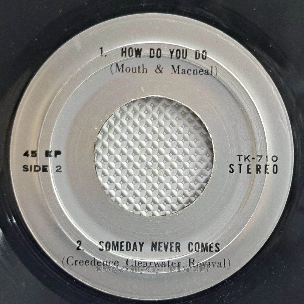 Welcome to The World of ""Thailand Vinyl Records"".Very rare and beutiful picture of cover. Check everyday . This item is for a true 7" single collector. It was printed and sold locally as limited EP back in the early 70's. Only few copies were spread outside Thailand. Most professional record collectors know that it is scarce nowadays and is absolutely a collector's item. If you know a UK magazine called RECORD COLLECTOR then you must have read many articles mentioning THAILAND EP and this is it !!! Here is your chance to own one-of-a-kind piece of Asian's 7" single history. Description Records !!! DETAIL SONG and ARTIST !!! Side A: A1 = Troglomen - Ding Dong / A2 = Gallery - Nice To Be With You Side B: B1 = Mouth & Macneal - How Do You Do / B2 = Creedence Clearwater Revival - Someday Never Comes Label&Catalogue number : : TK710 Country of release : THAILAND Condition (Sleeve/Disc) : VG+ / VG and pls see picture too. Shipping I am seller in Thailand not USA.So I can not ship 4$ as policy pls understand this real rate from oversea . Price for shipping(Airmail )&Packaging to worldwide only US 14.99 USD .Except Asia and JAPAN only 14.99 USD. You can save cost for combine shipping only 3 USD$ per each. 2xEP=17.99 USD$ , 3xEP=20.99 USD$ . My package very safety by big cardboard don't worry about your's EP/PS/LP. Time delivered 21-45 days . ***All item : have tracking system no need add money*** **For normal shipping (Airmail).Time delivery to ITALY maybe use 1-2 Months, France use 1-2 Months.But Don't worry item will arrived to you sure!!.For fastest and High value you can use Express Mail Service cost for1 EP =39 USD.EP will arrived to you within 5-7 Days. ***All shipment have fully tracking system *** Payment PAYMENT : I accept the follow payment by eBay managed , . My ID eBay provide by eBay .Account will be provide at the end auction.Charges to be covered by winner. If you have question pls email to me anytime i can answer immediatly. I have many EP,PS 7" Thailand Pls Click => View seller's other items Check my feedback , I care and honest all customer.I welcome 0 feedback but contact me first if you will bidding. Good Luck !!!! and Enjoy . 45 RPM / EP/ LP Grading Scale: Mint /NM/ Excellent(VG++) /VG+/ VG /G+ /Good(G) / Fair / Poor / Bad (According Record Collector Magazine (UK)) LOT164-21TK710