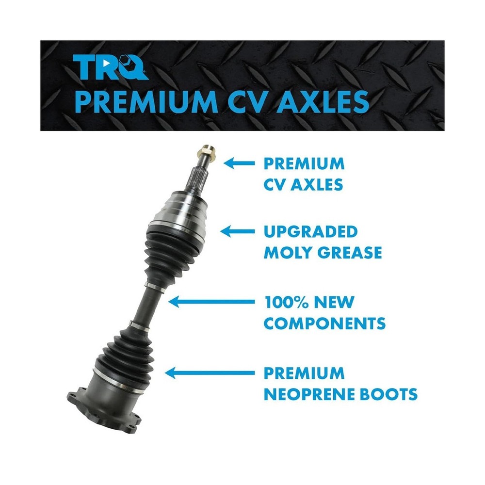 {{title} TRQ Front CV Axle Shaft Assembly Set Driver & Passenger Side Compatible with 2014-2018 Subaru Forester Description 2 Piece CV Axle Assembly Set Kit Includes (1) Front Driver Side CV Axle Assembly (1) Front Passenger Side CV Axle Assembly Fitment Compatible with: 2015-18 Subaru Forester 2.0XT Premium Front Driver & Passenger Side Compatible with: 2015-18 Subaru Forester 2.0XT Touring Front Driver & Passenger Side Compatible with: 2014 Subaru Forester 2.0XT Premium From 1/01/14 Production Date Front Driver & Passenger Side Compatible with: 2014 Subaru Forester 2.0XT Touring From 1/01/14 Production Date Front Driver & Passenger Side Product Attributes Quantity: 2 Piece Product Features 100% New: Manufactured to tighter tolerances for extended service life Neoprene Boots: Improved durability compared to stock material Moly Greased: Specifically-designed grease shield to reduce premature wear Application Specific Design: No modification Item Details TRQ CV (constant velocity) drive axles are manufactured using premium raw materials designed to restore original performance. TRQ CV drive axles are new, so there is no core charge with your TRQ purchase. TRQ-designed drive axles utilize neoprene boots, moly grease, stainless steel clamps, and heat-treated ball tracks to ensure extended service life. Each TRQ axle is application-specific so each spline and thread will mate properly for a seamless fit. All products are fit and road-tested in our Massachusetts R&D facility to ensure we deliver on our promise of Trusted Reliable Quality. Reference Numbers 28321SG010 66-7568 667568 NCV66012 SB-8103 Features: TRQ products are covered by a 2-year / 24,000-mile warranty. Warranties cover the cost of products only and do not cover any damage, labor, or any other inconveniences incurred. Reference Number(s): 28321SG010,667568,NCV66012,SB8103 Quantity: 2 Piece Product Details: Manufacturer: TRQ Brand: TRQ Model: TRQ CSA32613 2 Piece CV Axle Assembly Set Item Weight: 34.3 pounds Package Dimensions: 41.7 x 12 x 6.7 inches Item model number: CSA32613 Exterior: Machined Manufacturer Part Number: CSA32613 Date First Available: December 22, 2022 Delivery We Do Not Ship Outside of the Continental US. Return Policy All items qualify for returns within 30 days of receipt. Buyer is responsible for return shipping on any item that is not damaged. Feedback We take our reputation seriously, we buy and sell online, so we understand the value of trust. If you are unsatisfied with your order, please contact us and we will work with you to resolve it to your satisfaction. Delivery We Do Not Ship Outside of the Continental US. Return Policy All items qualify for returns within 30 days of receipt. Buyer is responsible for return shipping on any item that is not damaged. Feedback We take our reputation seriously, we buy and sell online, so we understand the value of trust. If you are unsatisfied with your order, please contact us and we will work with you to resolve it to your satisfaction.