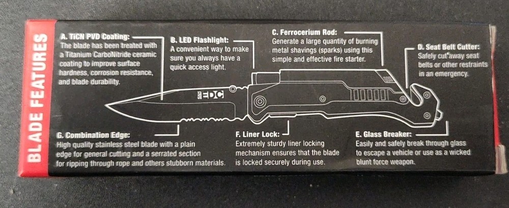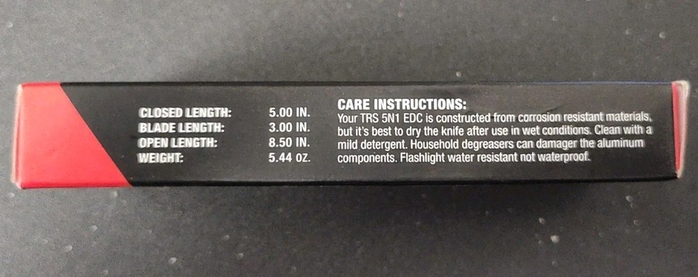 The TRS EDC 5N1 Tactical Defense Knife is a robust cutting tool designed for practical use. It features a straight back serrated blade, ensuring maximum efficiency for slicing and sawing tasks. The manual opening mechanism is reliable and user-friendly, perfect for both everyday carry and outdoor adventures. Crafted with a durable stainless steel handle and a sleek black finish, this knife is both stylish and sturdy. The liner lock type provides additional security and safety during use. The knife's classic model boasts a single blade, embodying the essence of TRS's commitment to simplicity and functionality in their tactical product line.