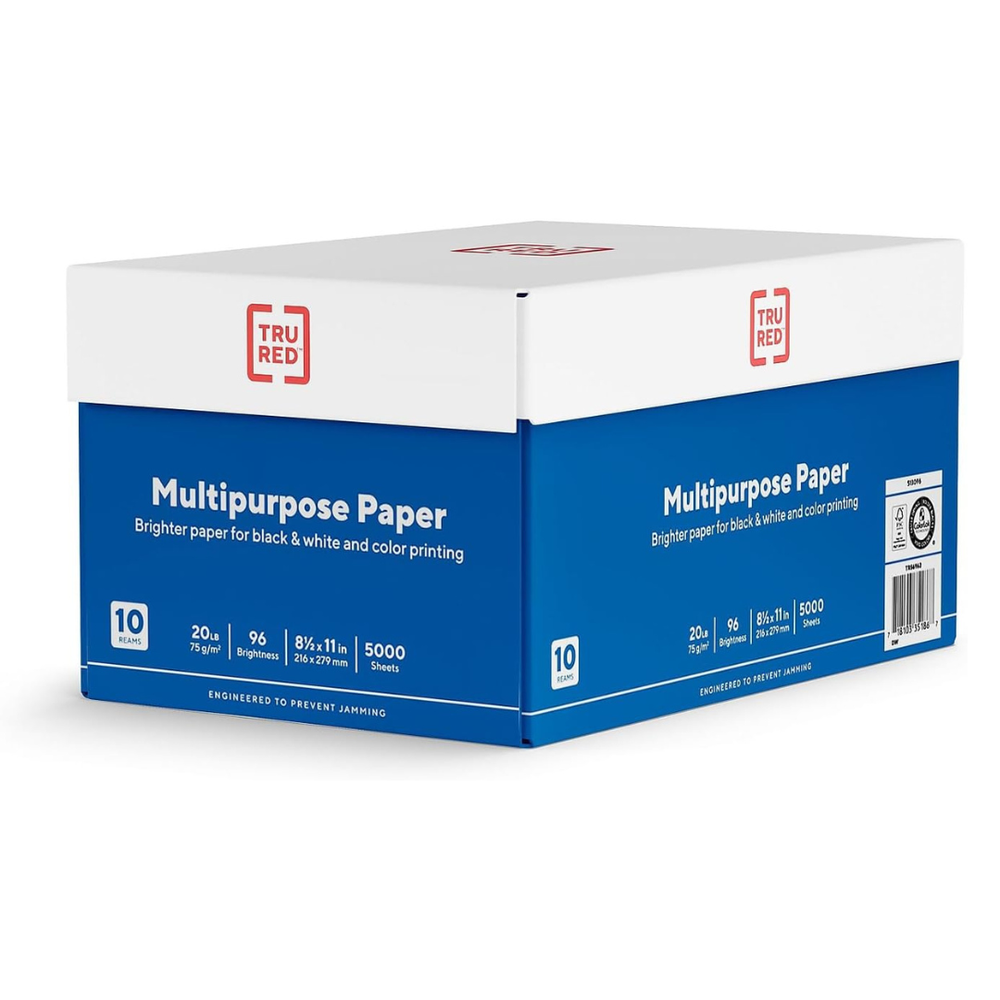 TRU RED 8.5" x 11" Copy Paper, 20 lbs., 92 Brightness, 500 Sheets/Ream, 5 Reams