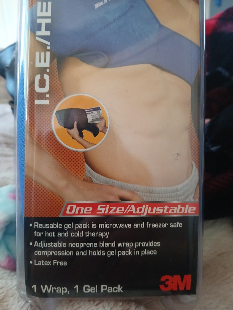 Adjustable neoprene blend wrap combined with reusable gel pack for ice or heat. Comfortable and secure wrap may be worn passively while resting or actively during Rehabilitation exercises or other activities, reusable safe non-toxic chill pack is microwavable and freezer safe for heat and cold therapy