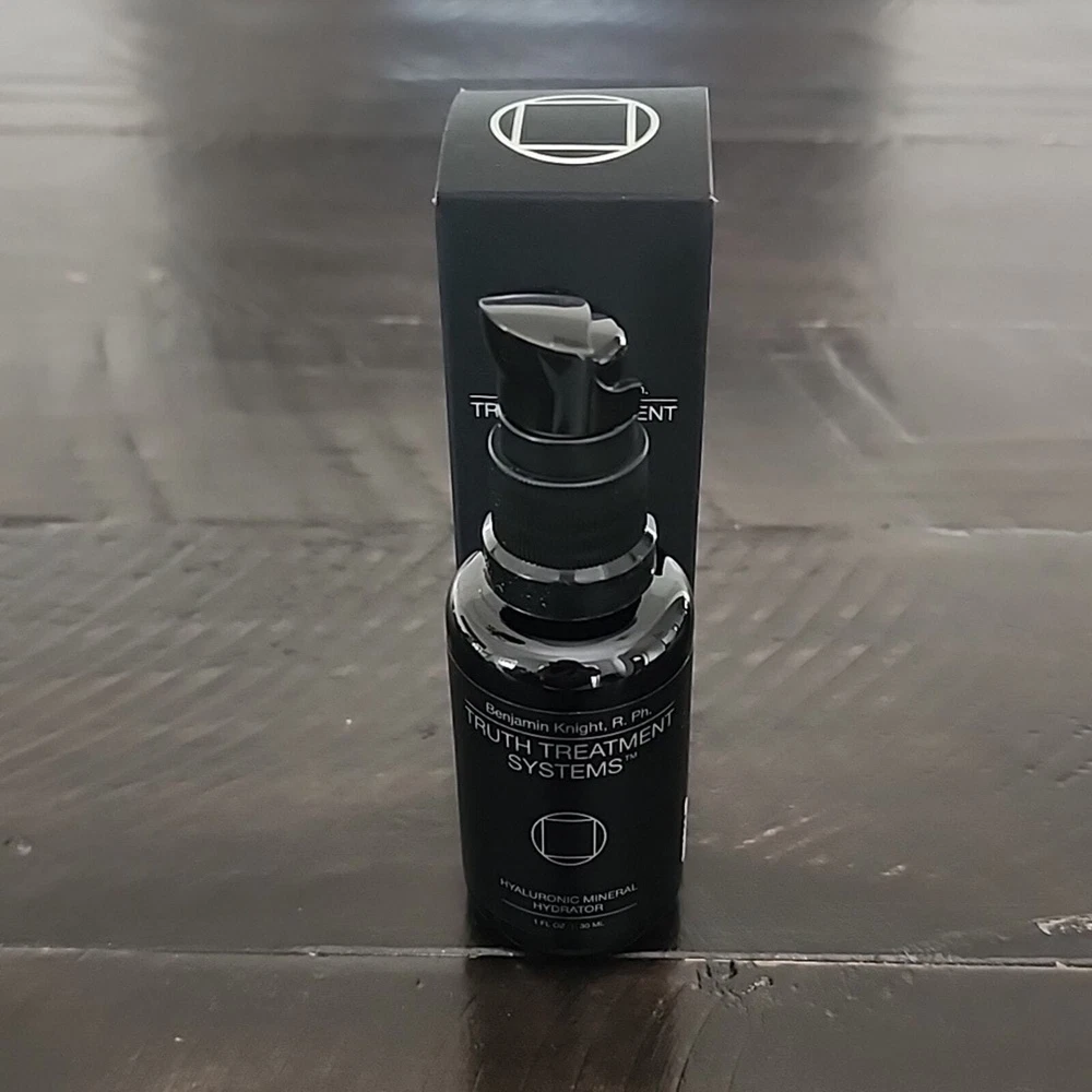 NEW WITH BOX TRUTH TREATMENT SYSTEMS Hyaluronic Mineral Hydrator. Treatment. Skincare. Black glass pump bottle. "Hydrate and plump skin with pure Hyaluronic Acid, Vitamin C and Polyelectrolytes. This concentrated, lightweight gel formula provides a high dose of Hyaluronic Acid for intense hydration at the stratum corneum. Our signature polyelectrolyte solution activates skin to support Hyaluronic Acid synthesis in the skin’s deeper layers. Boosted with Vitamin C for antioxidant protection, and honey for additional moisturizing and anti-bacterial properties." Truth Treatment Systems Truth Treatments. Ben Fuchs. Skin. Skincare. Beauty. Cruelty free. Clean beauty. Hydrating. Hydrator. Hyaluronic acid. Size: 1 oz Condition: NEW WITH BOX ✔ NEXT DAY SHIPPING ✔ NON-SMOKING ✔ NO TRADING 0242 - 5 / 0 / 5 oz