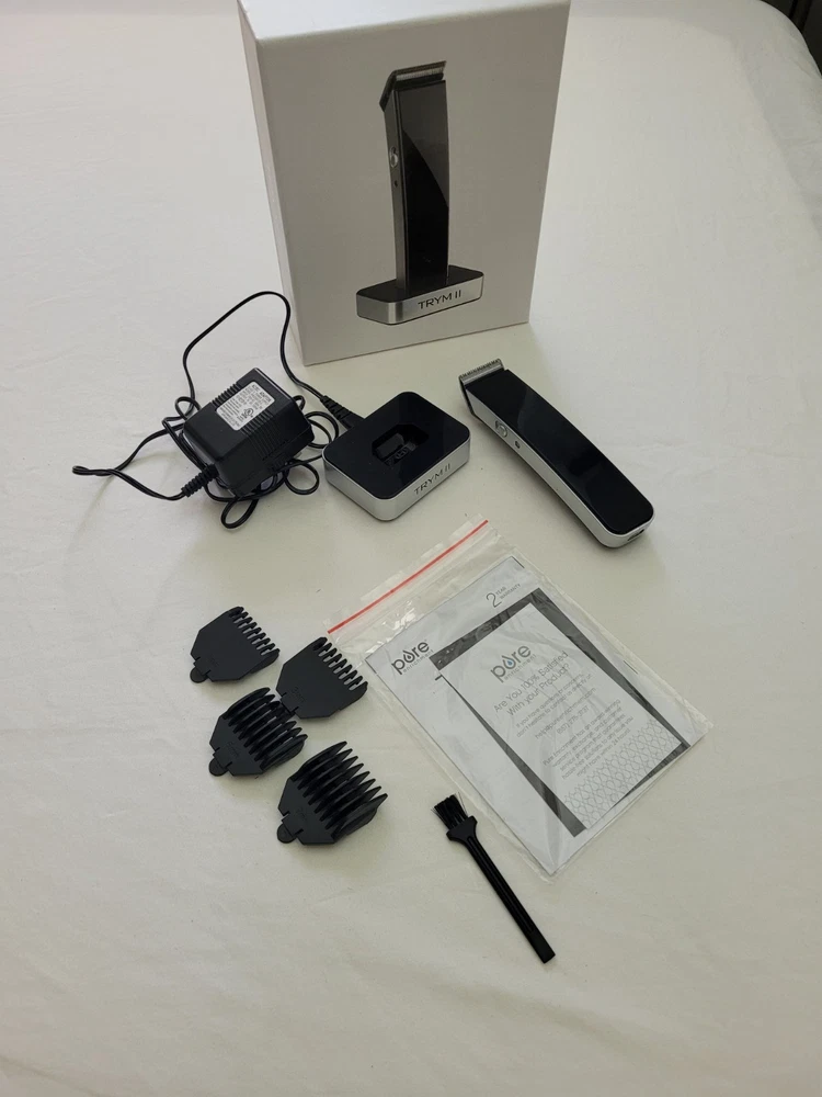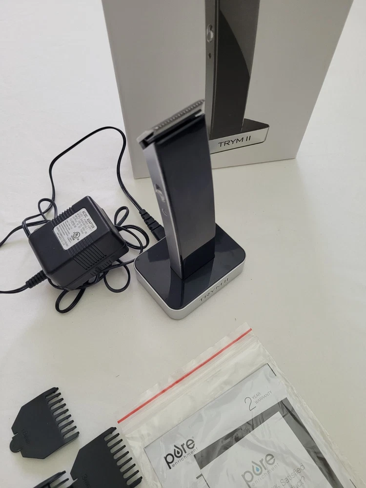 TRYM II - Rechargeable Modern Hair Clipper Kit - Ultra-Sleek Hair Body Mustache Please inspect all pictures and description . **We try to adequately describe each item (photographs) & disclose flaws/blemishes. **C olors may slightly differ due to monitor settings. If you have any questions or would like to see additional photos, please do not hesitate to contact us. We will try to respond to your question or request promptly. **If you encounter a problem with your item, please contact us.. Items ship out the same or next day. Items are from a smoke-free environment . Items stored in an air conditioned area. TRYM II - Rechargeable Modern Hair Clipper Kit - Ultra-Sleek Hair Body Mustache.
