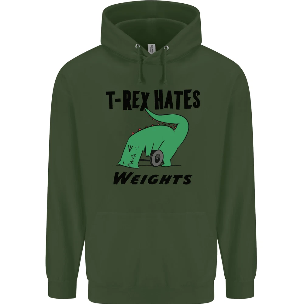 T-Rex Hates Weights Funny Gym Workout Mens 80% Cotton Hoodie