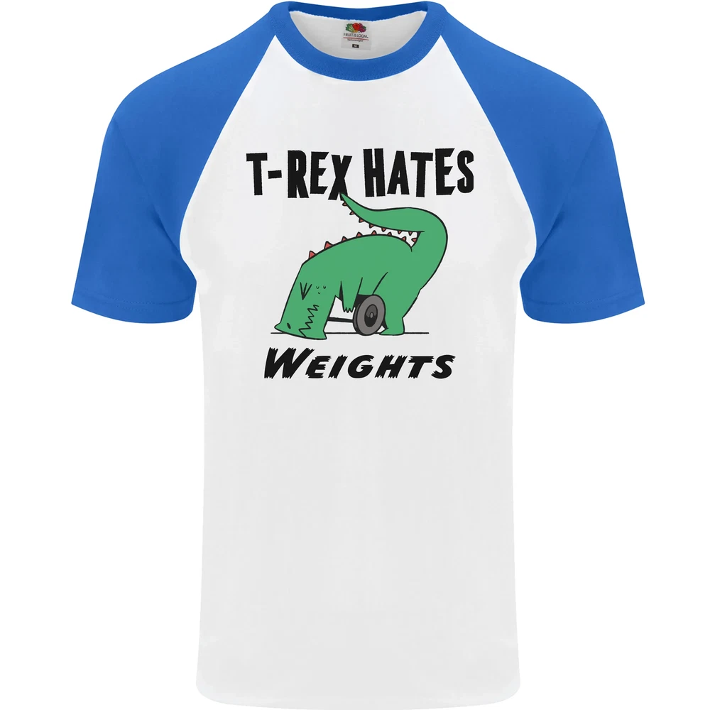 T-Rex Hates Weights Funny Gym Workout Mens S/S Baseball T-Shirt
