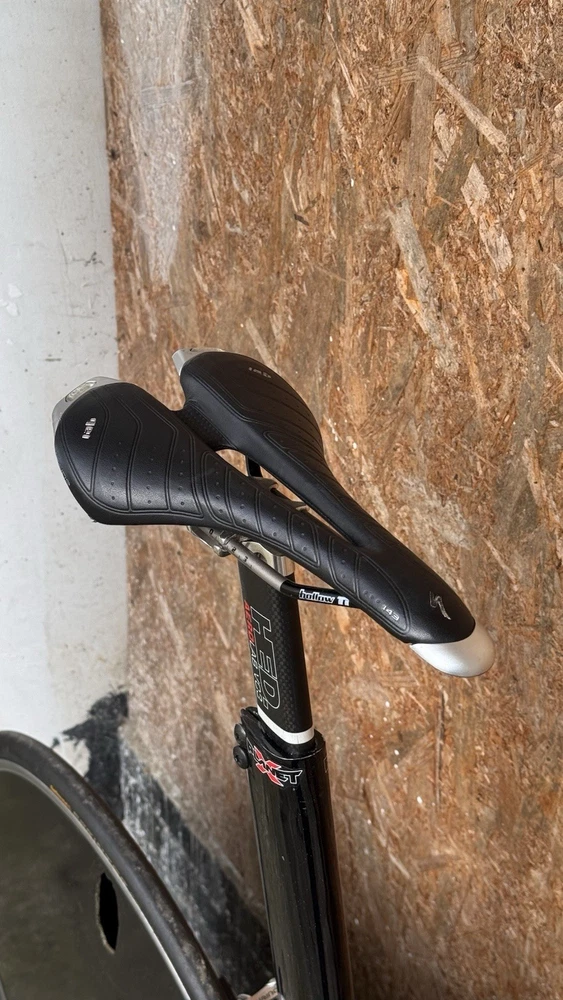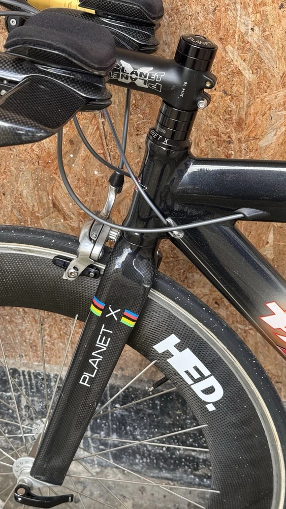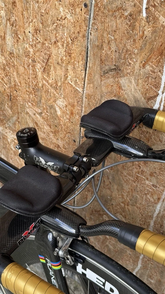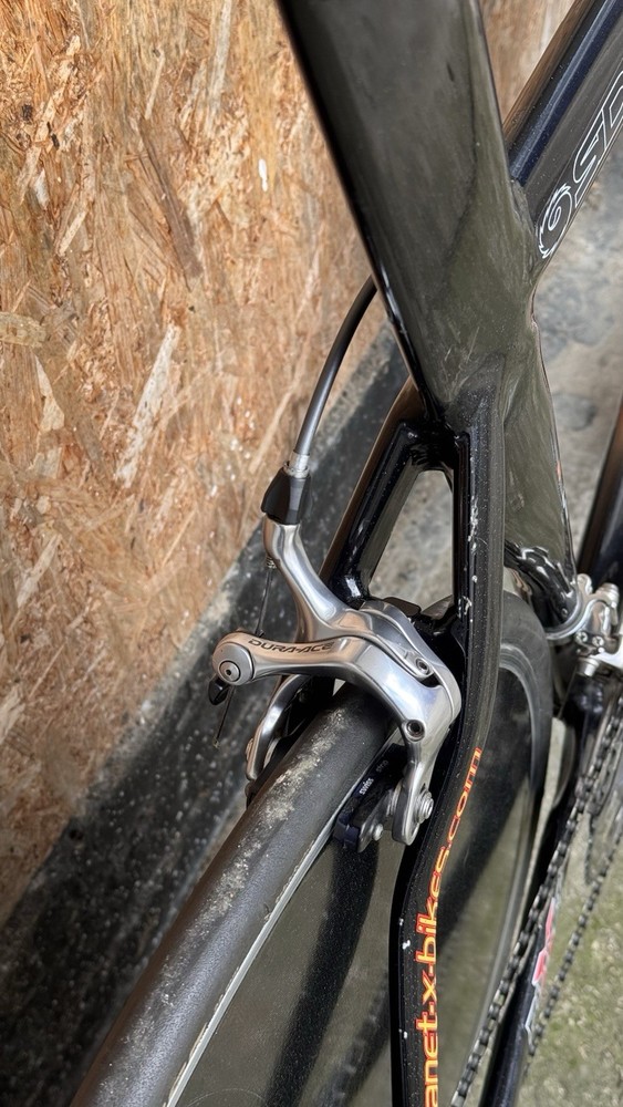 Generally good conditions with some paint chips Shimano Dura Ace 7800 10s with TT bars shifters TT carbon adjustable handlebars With tektro carbon brake levers HED Disc and Deep Carbon wheelset Rim brakes tubular good conditions Was lately serviced plenty of life on components I believe the frame was custom built on size The seat tube is a 72cm wich trimmabe While the top tube is a 56cm c-c Specialized Toupe 143 gel carbon saddle with HollowTI mount Only 10kg World wide shipping Item listed on different platforms Look at my other listings For availability Please ask for info and discount