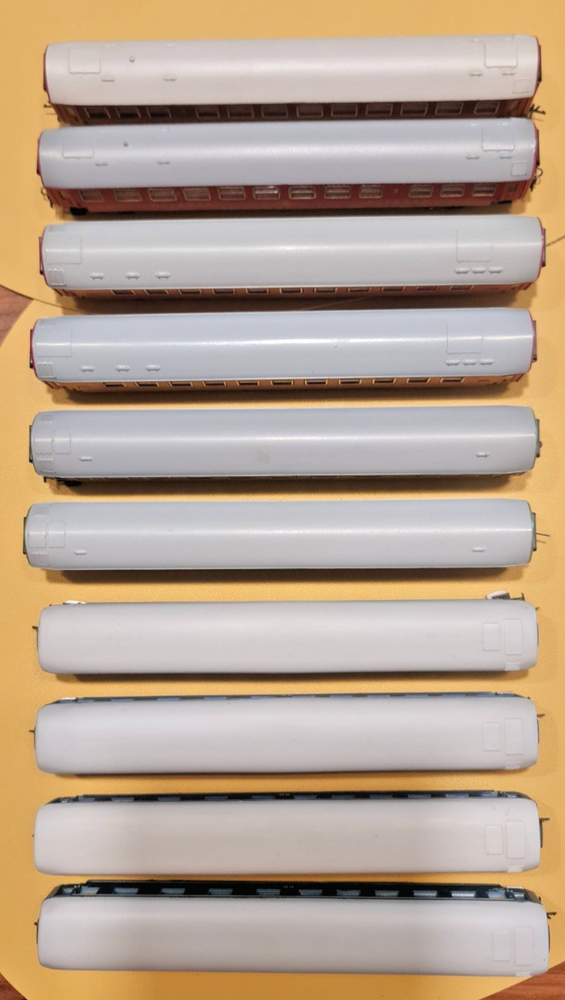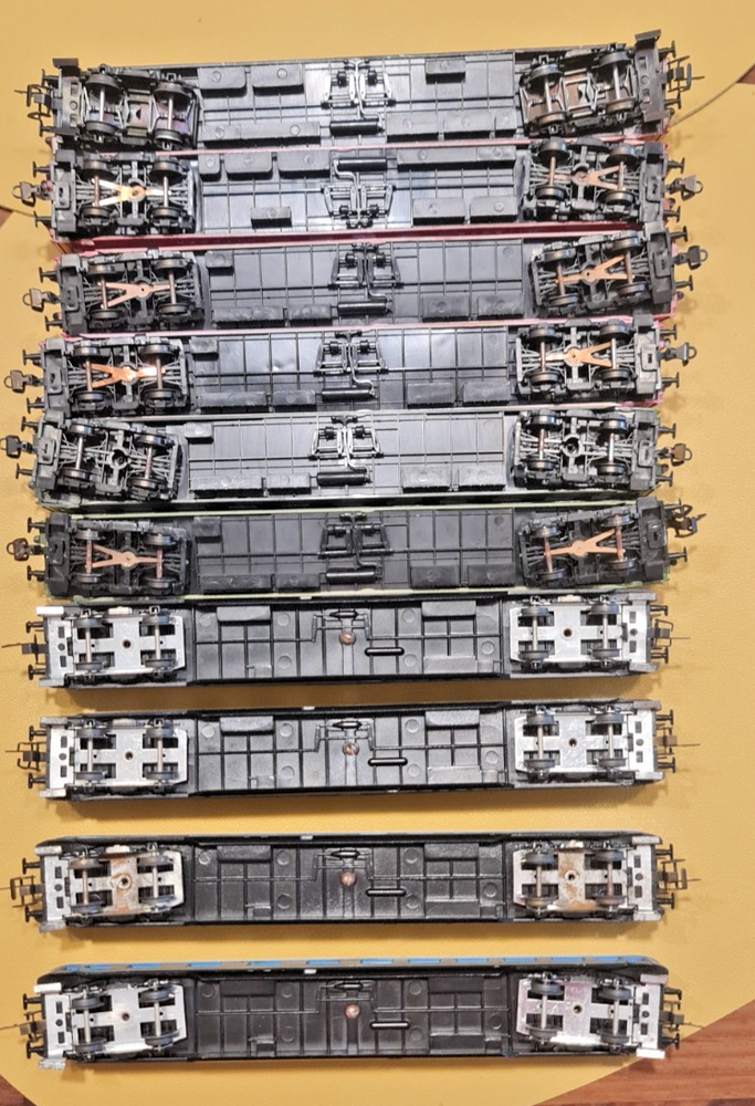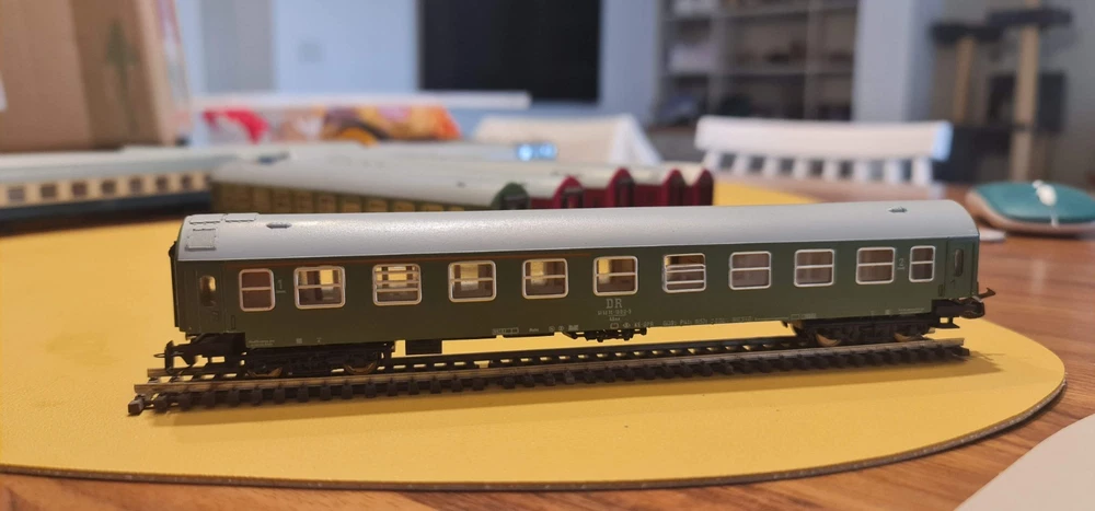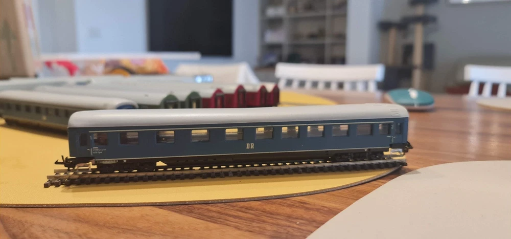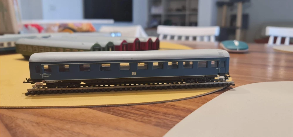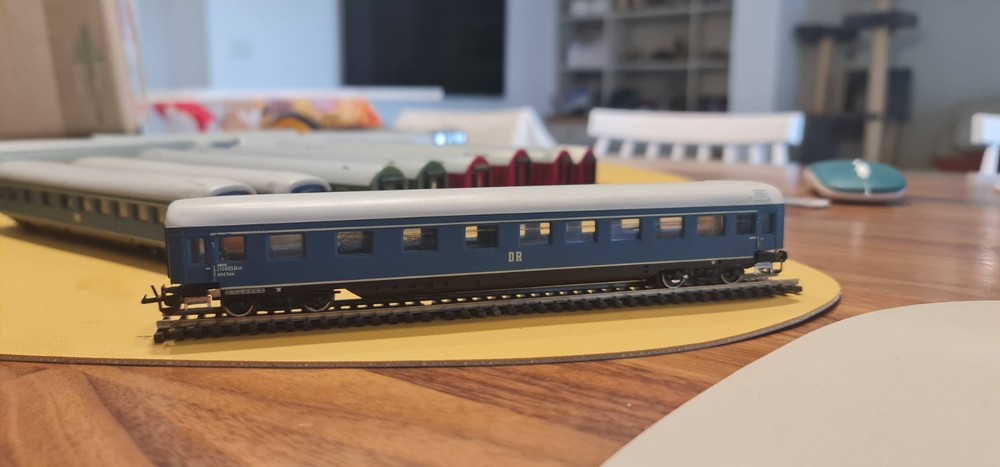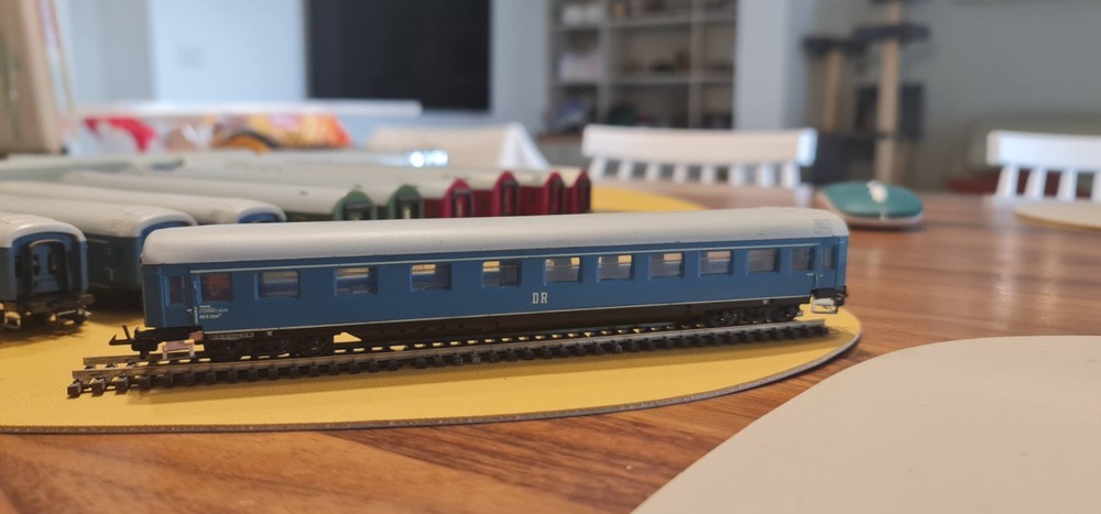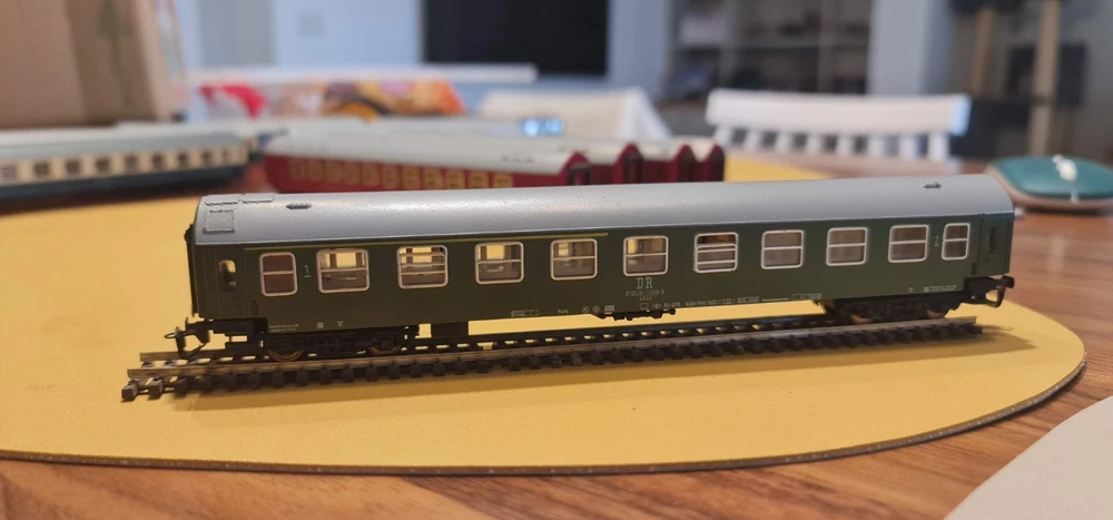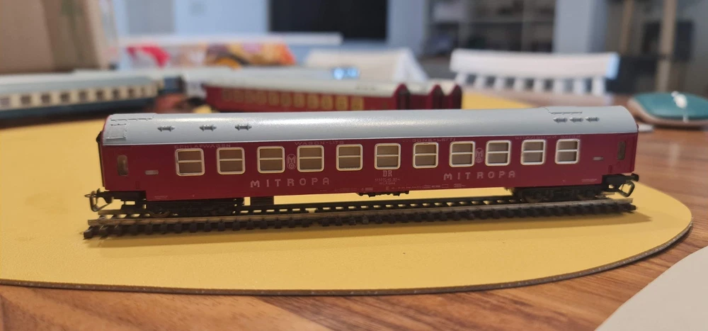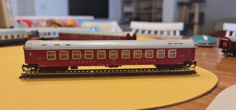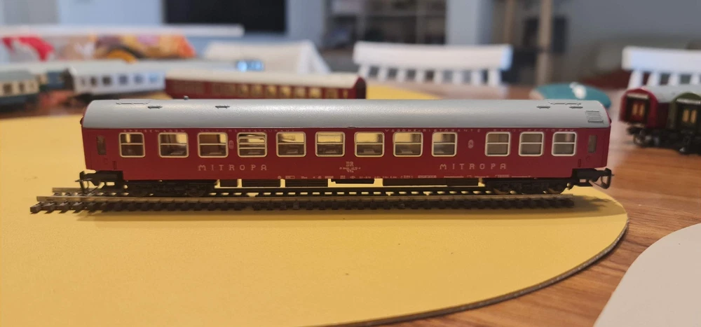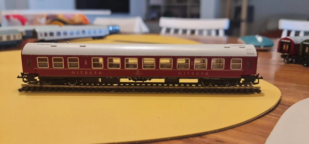 Up for sale a lot of 10 coaches / passangers cars. Description Scale & Gauge: TT (1:120) Railway: DR – Deutsche Reichsbahn (East Germany/DDR) Couplers: Classic TT loop/hook style (BTTB/Zeuke type) Coach length: ~175–180 mm each (see ruler in photo) What’s included (10 coaches total): 4× red “MITROPA” service cars (sleeping/dining stock typical of DR international trains). 2× DR green “2” second-class corridor coaches. 4× DR blue coaches (dark-tinted windows; typical for couchette/sleeper stock). Condition: Used but great overall . Paint and lettering are crisp; windows clear with only light handling marks. All couplers and wheelsets present; roll freely. No boxes. Please review photos for exact condition—sold as pictured. Markings & prototype notes: “ MITROPA ” = the DR catering/sleeper company used on red sleepers/diners. “ DR ” and class “ 2 ” markings on green cars indicate second-class. Blue DR cars with center “DR” logo are typical for couchette/sleeper liveries of the late 1960s–1980s UIC-Y era. Based on the underframes, glazing and loop couplers, these appear to be BTTB/Zeuke/Sachsenmodelle-style TT coaches (pre-Tillig era). Sold as-is from a collection / No returns Shipping/packing: Will be packed securely and sent to you with fast and tracked delivery. If you have any questions or need more photos please do not hesitate to contact me.