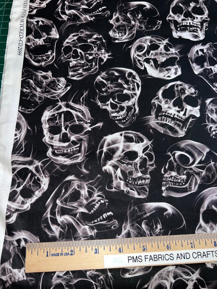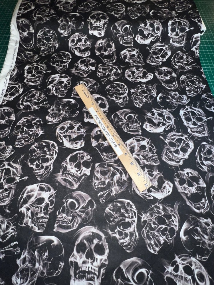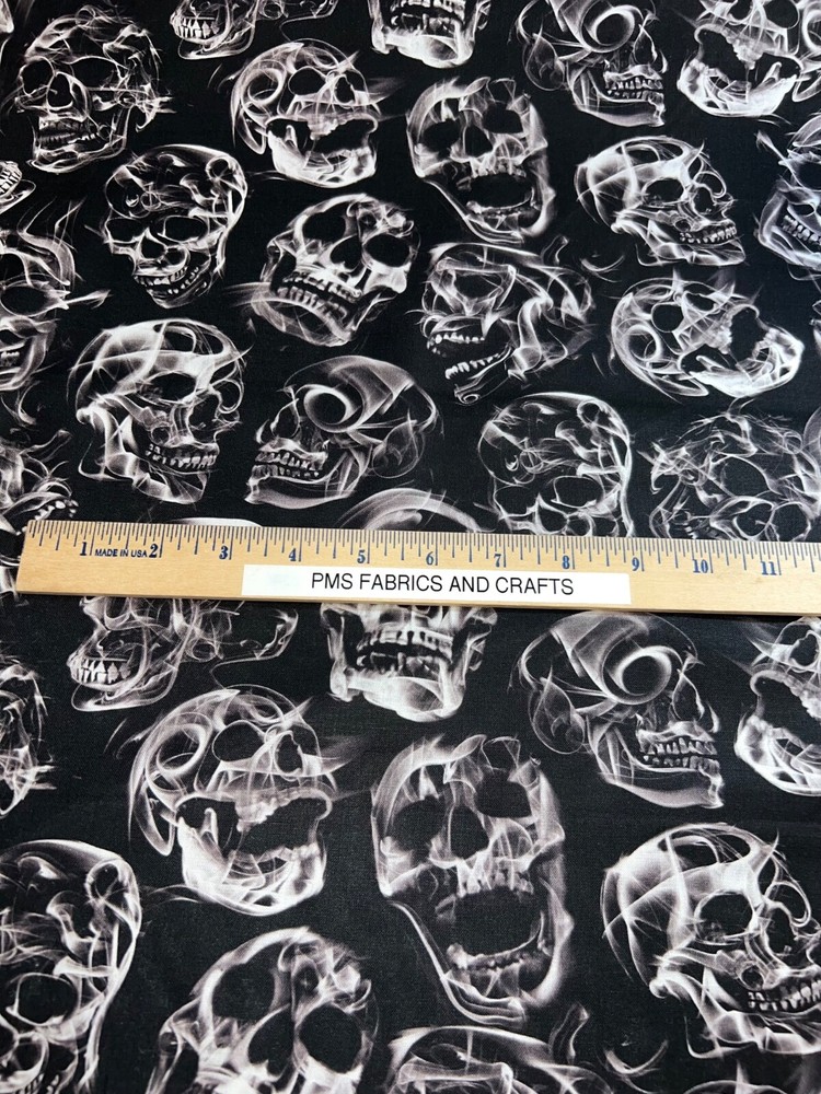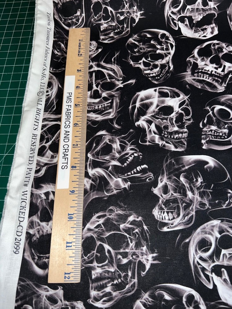This is great 100% printed cotton fabric in stock - wonderful Timeless Treasures 100% cotton fabric sold by the yard. PERFECT for anyone that loves Skulls / Skeletons - Gothic prints! Each yard is approx 36 x 44 inches. NOTE that at the cut edge, you will have some cut or partial images or blocks. This is a print from the collection called WICKED - love these smoking skulls that are printed from selvage edge to selvage edge. There are so many possibilities with this great fabric. The pictures do not do this justice! Colors are black, gray and white! I have also included a picture of washing instructions from the manufacture. UNCUT UNTIL YOU ORDER so when ordering more than 1, you should get 1 section of fabric but in the event that the bolt is in sections from the manufacture we will notify you BEFORE shipping. Really cute & fun! NOTE that some computers or mobile devices may NOT show accurate colors. Great fabric to make great pillows, mug rugs, quilt blocks & more! Not recommended for sleepwear. 100% cotton fabric - new & unwashed from smoke free, vapor free & pet free home! Shipping is to USA only - please review the shipping tab for current shipping rates. PLEASE DO NOT pay for the items individually - WAIT to pay for all items together to save you time & money! When wanting to purchase 4 or more items (same item or can be a mixture of items from our store), please request a special listing! Just message me the item numbers that you want, the qty of each, your mailing zip code & then I can create you a special listing here on ebay with the correct shipping rate! This will save you money on shipping! As per Ebay customer support, Ebay programming will not allow a customer to request the invoice total since we offer discounts on our items, so in order to get the best rate shipping we must create a special item here on Ebay after you send us the item numbers, qty of each, & your mailing zip code. Once payment is received & clears Ebay & please make sure that the USA mailing address is correct on the payment, we will ship US Postal Service or for larger orders, we also use UPS for the best rate shipping. NOTE that the shipping is only good for the initial mailing. If the address is incorrect on your payment & the package is returned to us, you will be charged shipping again so that we can remail - this is why it is IMPORTANT that you make sure that your shipping address is correct on your payment! If your order had free shipping, then you will be charged a 2nd shipping fee as well - again this is why it is important to review your payment BEFORE you complete it. Please note that orders paid by Echecks will NOT be shipped until Ebay & your bank clears your payment which normally takes 3-5 business days. The time period for clearing TOTALLY depends on your bank & EBay but once the clearing is sent by Ebay, we will be able to mail the package. NOTE that the date on EBay is an ESTIMATED delivery date AFTER the payment clears Ebay. This is ONLY an estimate so please do not expect the package to arrive exactly on this date since once we mail the package we cannot control the time that it takes for USPS to deliver the package. Please be FAIR on your feedback since once we mail the package (you will get a tracking number & a message notice showing we mailed the package & the date) we cannot control the actual delivery date. Return policy - In order to comply with Ebay power seller guidelines, we are forced to accept returns for Ebay BUT please understand that any item that has been washed, cut or around smoke, vapor or pets will not get a full refund once the return is received at our location. This is due to the fact that we sell new - unwashed - smoke free - pet free items & once it is altered, washed or around smoke or pets, it is no longer sellable. Shipping for the original package is non-refundable - if your item had free shipping, the actual cost of shipping your order will be deducted from any refund. NOTE that any return on special listings or custom orders will be charged a 10% return fee! Please note that we include a packing slip with EVERY order that includes the order details like item, qty, our Ebay shop name and contact information. This helps prevent lost packages by the carrier in case where the label is removed from the outside of the package. Thanks for shopping pmscrafts74 – we appreciate your business & look forward to hearing from you!