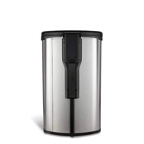 13.2 Gallon/50 Liter, Silver Black, Stainless Steel, Toe Tap Trash Can, trash can is designed and engineered by Nine Stars, the world's first legal patent holder. With its sleek design, it can be use almost any place, such home, office, kitchen, the bedroom, dorm room or a kid's room. This durable Trashcan uses the most advance sensor technology can be found in all Nine Stars trashcans. As your hand or debris within ten inches and 130-degree angle from the infrared sensor, the lid will automatically open. The lid will remain open if debris or hand remains within the range of the infrared sensor. Three seconds after yohand moves away from the lid, it closes automatically. Power lasts up to one year in normal daily usage. It includes a ring liner to keep trash bag hidden from public view for a neat and clean apur appearance