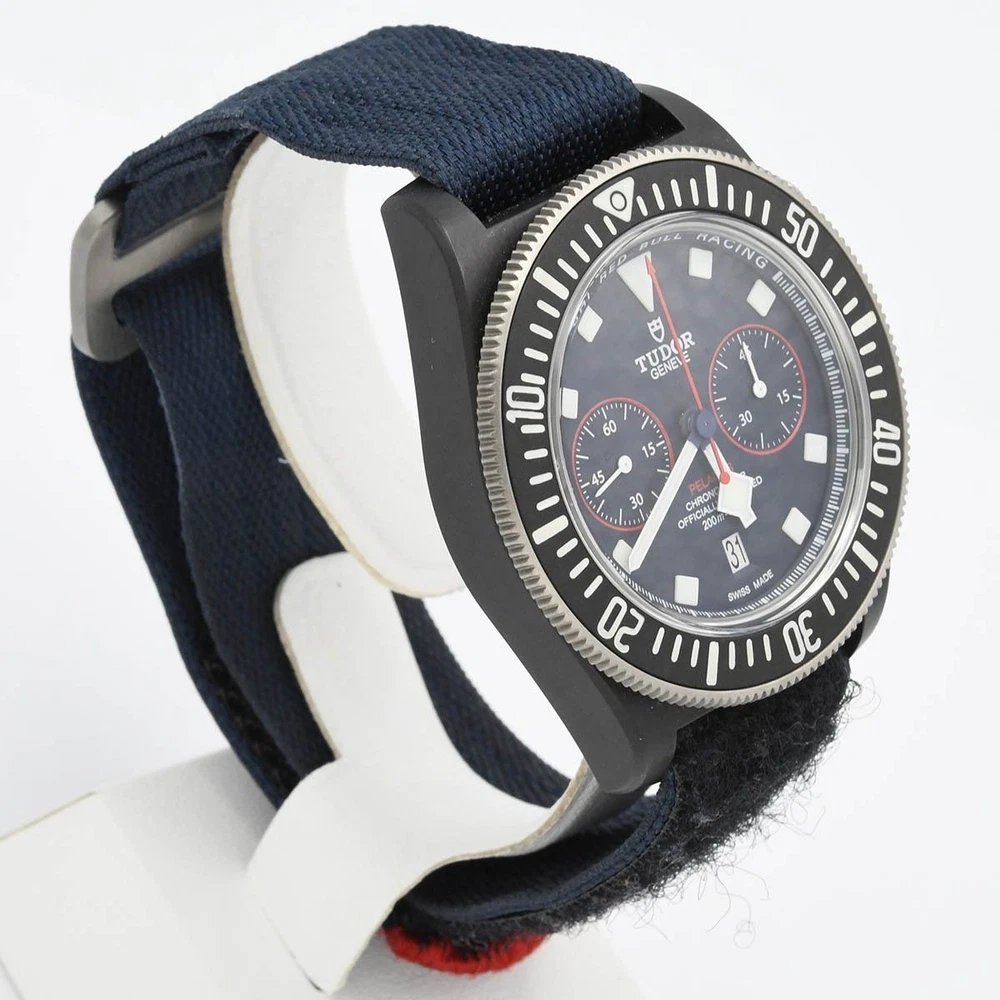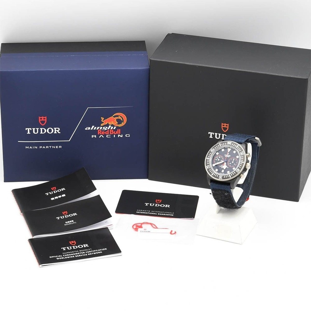 Description 🔱 TUDOR Pelagos FXD Chrono - Carbon Composite Edition (Ref. 25807KN) The Pelagos FXD Chrono is a technical masterpiece engineered for the Alinghi Red Bull Racing team. It features a high-tech matte black carbon composite case , a first for TUDOR, combined with a fixed strap bar (FXD) system for ultimate durability in extreme conditions. 1 This timepiece is in excellent condition with no visible signs of wear on the case. It is powered by the Manufacture Calibre MT5813, providing professional-grade chronograph functions with a vertical clutch and column wheel. ⚙️ Product Specifications Feature Specification Brand TUDOR Model / Ref. Pelagos FXD Chrono / 25807KN Movement Manufacture Calibre MT5813 (Automatic / COSC Certified) Accuracy Outstanding: Approx. +2 sec/day (Timegrapher measured) Case Material Black Carbon Composite with Titanium elements Bezel Titanium with Matte Black Carbon insert Water Resistance 200 m (660 ft) Crystal Flat Sapphire Crystal 📏 Size & Fit Case Size: Approx. 43 mm (Diameter) x 50 mm (Lug-to-lug) Wrist Circumference: Approx. 27.5 cm (Adjustable fabric strap fits almost any wrist size) Strap: Genuine TUDOR navy blue fabric strap with self-gripping fastening system. 2 💎 Condition & Accessories Overall Status: Mint / Near New. There are no signs of use on the watch head. Strap: Shows very slight surface dirt from storage/handling, but remains in excellent structural condition. Operational Status: Working Perfectly. Chronograph functions are crisp and timekeeping is highly accurate. Accessories (Full Set): Original TUDOR Outer & Inner Box International Warranty Card Instructional Manual ✨ Why This Pelagos FXD Chrono? The 25807KN represents the pinnacle of TUDOR’s "Tool Watch" philosophy. The carbon composite case makes the 43mm watch surprisingly lightweight and comfortable, while the MT5813 movement (derived from Breitling's B01) offers legendary reliability. 3 With its +2 seconds/day precision and "like-new" state, this is a rare opportunity to own a current-generation high-spec TUDOR at a professional standard. Please review the photos to appreciate the stealthy matte finish and the pristine condition of this watch. Shipping Fedex,DHL,Japan Post *For FedEx / DHL shipping items, a person residing in the remote area will have to pay an additional shipping fee. International Buyers - Please Note: Import duties, taxes, and charges are not included in the item price or shipping cost. These charges are the buyer's responsibility. Please check with your country's customs office to determine what these additional costs will be prior to bidding or buying. Thank you for your understanding. Read more... Conditions shown here are based on our standard. Please understand that the conditions of used items that have been stored in our warehouse changes by time. Listings that shows "Working" means that it confirmed working when we stored items in our warehouse, some items might stop working during the shipment or after delivery to you.(We double check if they are working before shipping them out) Pre-owned(used) items are used items, so please purchase if you acknowledge it.