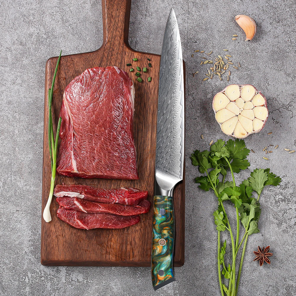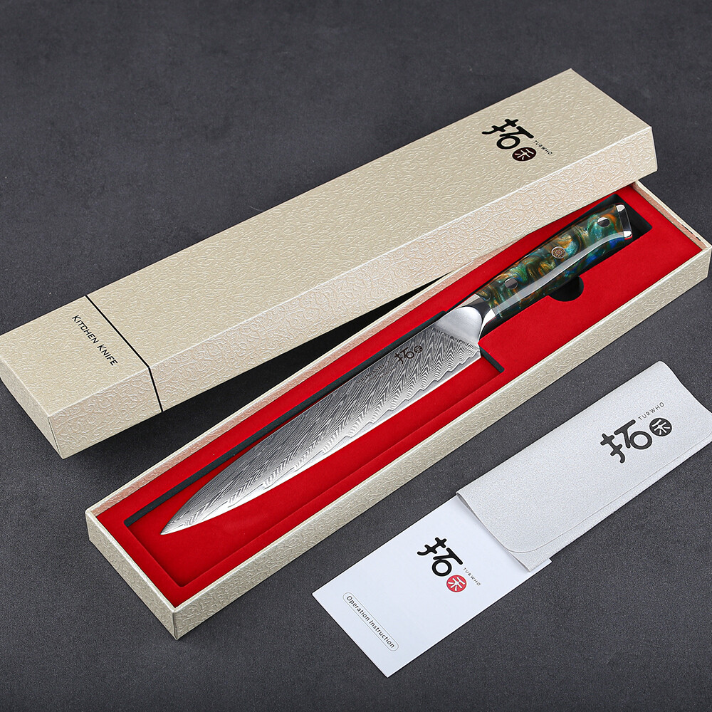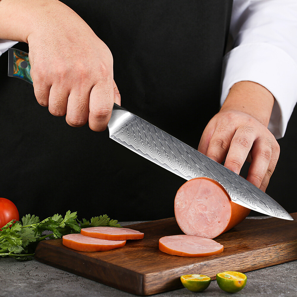 TURWHO 8in Slicing Knife Japan VG10 Damascus Steel Kitchen Cooking Carving Knife