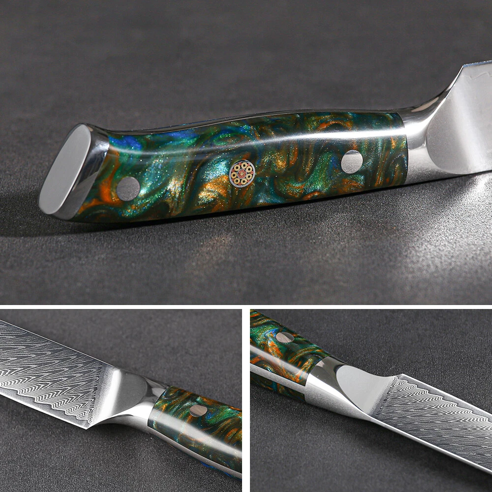 gtin13: Does not apply Color: Multicoloured Room: Kitchen Manufacturer Warranty: Lifetime Number of Items in Set: 1 MPN: A00080YM-SZ-CLK The Pattern of Knife Blade: Feather Brand: TURWHO Blade Edge: Straight Features: Easy Clean Custom Bundle: No Food Compatibility: Universal UPC: Does not apply Cutting edge: 15 degrees Blade Length: 8 in Bundle Description: 1x Knife In Gift Box Making Method: Hot Air Type: Carving & Slicing Knives Net Weight: 203g Material: Japanese VG10 67-layer Damascus Steel Handle Material: Resin Handle Set Includes: Carving & Slicing Knives Model: YM-SZ-CLK