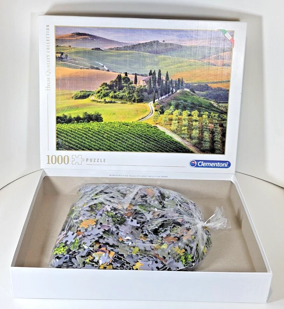 Beautiful landscape of the Tuscany countryside in Italy. Puzzle is finished with a linen texture. Classic! We did not work the puzzle or count the pieces, but we verify number count at your request. Each item is carefully packaged to prevent any damage and is shipped immediately with tracking.