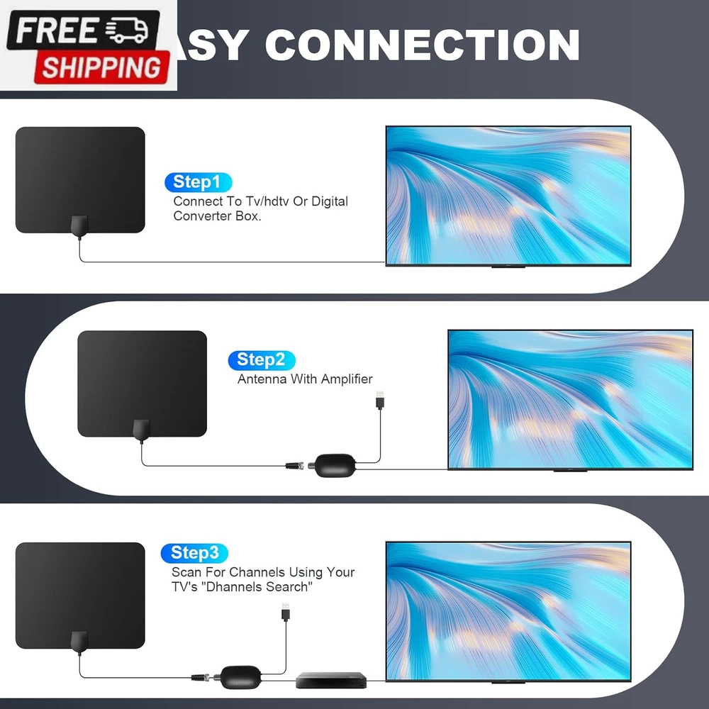 TV Antenna Indoor Long Range 900 Miles, Supports 4K 1080P Smart TV Signal Reception with Signal Amplifier 16Ft HDTV Coax Cable Enjoy More Tv antenna for Local Channels: Get more channels by antenna for smart TV, receive local broadcasting, ABC, CBS, NBC, CPS, FOX, CW, ION, UMAS, etc HD Antenna for TV: Our digital TV antenna indoor adopts an upgraded Smart IC Chip, receives TV broadcasts including 4K, UHD and 1080 HDTV for the hd picture 16FT Coax Cable: Coaxial cable is composed of a solid center conductor, dielectric insulation, three aluminum shielding layers, and a durable outer layer. so that you will never lose signal or suffer distortion even in bad weather Easy to Install: Simply plug the coaxial cable from your digital indoor HDTV antenna into the ANT/IN connector on the back of your TV, Point the TV antenna in the direction of your local TV tower and scan for channels After-Sales Service: Our package includes a TV antenna, amplifier signal booster, manual. If you have any questions about the product, Our 24 online support will assist with any issues or concerns Product Description Shipping Fast shipping is very important for us. Our standard US shipping service is FREE. Your order will be shipped within 2-3 business days upon full payment received. Your order will be delivered within 2-3 business days after the handling time. We only ship to the confirmed PayPal address. We reserve the right to cancel any order for any reason at any time. We are not responsible for undeliverable addresses. Returns and payment We offer a 30 days return policy from checkout winning date. We allow only PayPal as payment method FeedBack Your feedback very important to us, after you get your package and you are satisfied with our service please leave us positive feedback If you have any problem with your order / any questions please before leave any type of feedback For any questions, using eBay contact system Please visit our eBay store to check out other items for sale! Thank you for shopping at our store.