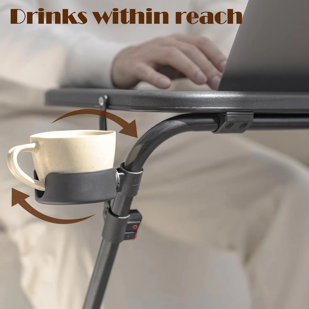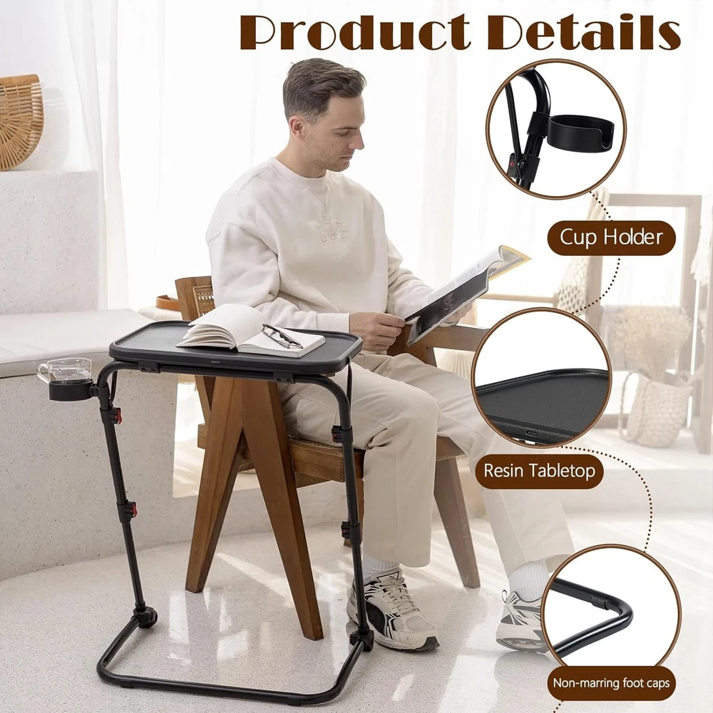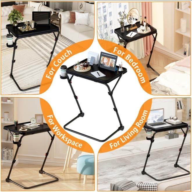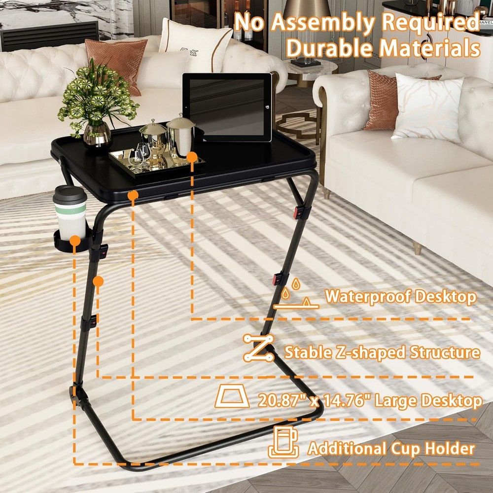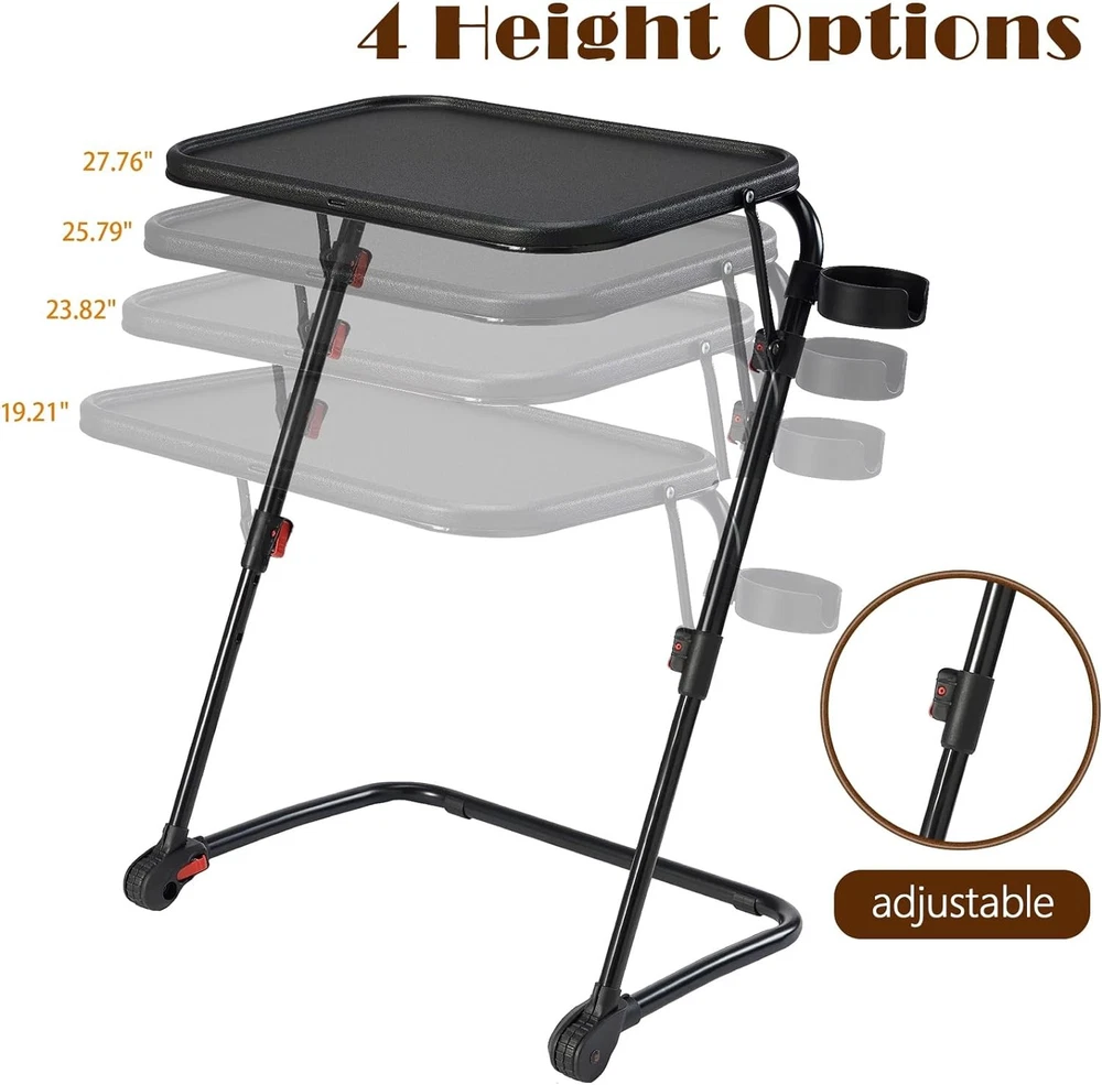 TV Tray Table with Cup Holder Adjustable Folding, TV Dinner Tray for Living Room