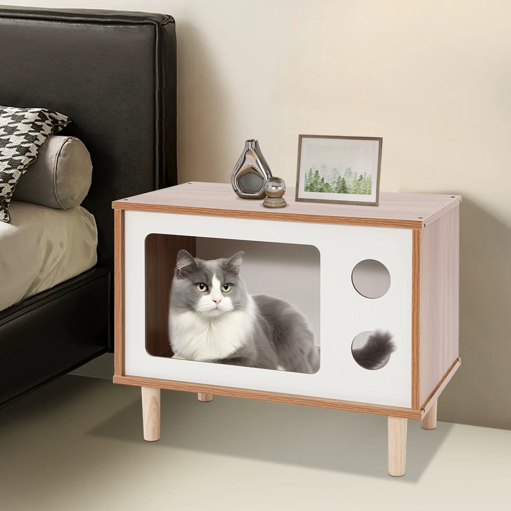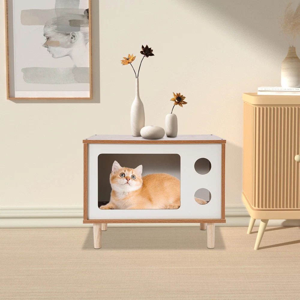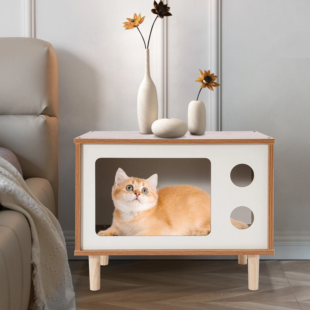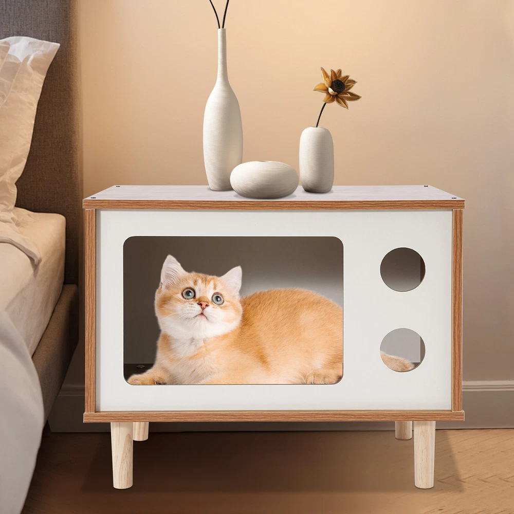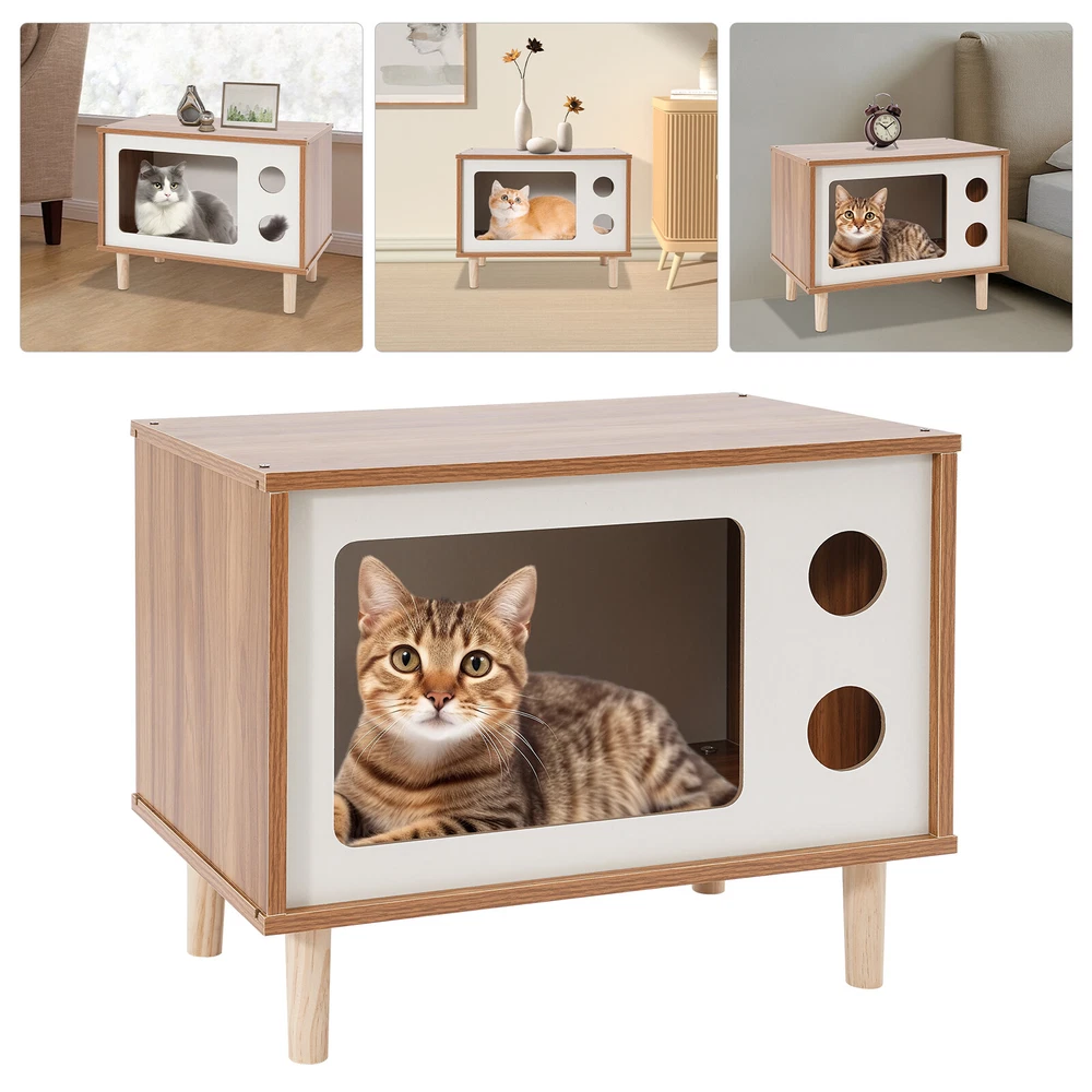 Floorstanding Cat House Cat Bed Indoor TV-Shaped Cat Shelter Load 75kg/165.35lbs Description This cat house cleverly combines a pet resting area with practical storage space and is built with high-grade materials to ensure long-lasting and stable use. It provides a cozy nest for your beloved pet without losing a touch of natural and elegant decoration for the bedroom, which is an ideal choice for pet lovers. Key Features Selected Material: Made of E1 MDF and solid wood legs after sanding, it is wear-resistant, impact-resistant, odorless, with great sturdiness, harmless to the health of pets and the human body, and guarantees a long service life. Pet Friendly: The opening in the front is designed for easy access for cats, and the two round holes can be used as viewing windows. This makes it easy for you to interact with your cat through these holes. The TV-shaped appearance also increases your cat's sense of security and fun. Stable and Sturdy: Four solid wood legs ensure that the cat house is stable and sturdy. With a weight capacity of approximately 165.35 pounds, it won't easily topple over even if a few cats jump on it. It can also be used as a reliable stool for you to sit and rest when you are tired. Moderate Size: The compact size (19.7*11.4*15.7 inches) is suitable for placing at the head position of the bed in the bedroom, which will not take up too much space, but also meet the needs of storage and pet rest. Easy to Clean: The smooth surface is easy to clean, you just need to wipe it with a damp cloth (not included) to keep it clean and tidy. Beautiful and Fashionable: The simple style design with a walnut and white color scheme is both beautiful and fashionable, which can fit well into various home styles. Easy to Install: With modular design, pre-drilled structure, and complete installation accessories, you can easily assemble it by yourself. Customer Service: We aim to provide quality products and services. If you have any problems, please feel free to contact us. We will reply and solve the problem for you as soon as possible. Details Smooth Edges: The smooth and burr-free edges enhance the beauty of the product and better care for your skin when installing and cleaning it. Sturdy Support Legs: 4 3.94-inch high solid wood legs ensure the stability and solidity of the product and also accelerate air circulation to prevent the cat house from moisture. Thoughtful Holes: The holes in the front allow air to circulate through the cat house so that cats can breathe fresh air. Application It can be used as a cat house or cat jumping platform for all kinds of indoor cats and small dogs weighing around 9.92 pounds, etc., as well as a nightstand, coffee table, footrest, decorative item, living room decoration, etc. How to Install Locate all accessories. Install the bottom. Install the side panels and front and back panels. Install the top panel. Installation complete. Specification Mount Type: Floorstanding Assembly Required: Yes Shape: TV-shaped Style: Modern Material: E1 MDF, Solid Wood Process: Sanding Color: Walnut, White Applicable Cat Weight: Approx. 4.5kg/9.92lbs Overall Load-capacity: About 75kg/165.35lbs Support Leg Height: 10cm/3.94in Product Size: 50*29*40cm/19.7*11.4*15.7in Package Size: 58*40*10cm/22.83*15.75*3.94in Gross Weight: 6kg/13.23lbs Net Weight: 5.7kg/12.57lbs Package Included 1* Cat House 4* Support Legs Other Mounting Accessories Notes Please check the style and size before purchasing. Please do not place items on it that exceed the product's load-bearing capacity. Please allow the slight color difference caused by the shooting light and 1-3cm error due to manual measurement and make sure you do not mind before ordering. Payment Delivery details Terms of sales About us Contact us Payment We accept ebay payment 。 Fees such as import duties, taxes are not included in the item price or shipping costs. These charges are the buyer's responsibility. Delivery details Shipping: 2-9 working days to: USA Terms of sales We maintain high standards of excellence and strive for hundred percent customer satisfaction. Feedback is very important to us. We hope that you contact us immediately before you give neutral or negative feedback, so that we can address your concerns. It is impossible to address issues if we do not know about them! About us Your satis faction is our ultimate goal. We work hard to earn your trust and future business. Our certified technicians have tested each item before shipping. The unit comes with 1 year limited warranty on all manufacturing defects. a) If you receive a defective item, you may return it or ask for a discount. Please contact us within 14 days after you receive the package. b) What you returned must be intact and in its original packaging as re? u. Customer is responsible for shipping costs of the returned item. c) We will cover the cost of shipping back t with the shipping rate indicated in the registration page. We will send you a new unit or refund the full payment you paid. Thank you. Contact us Business Hour Business Hour: Monday To Friday: 8:30 AM to 5:00 PM (Beijing China time) Due to time zones, our reply to your questions may not be immediately. But within above working time, we will reply your email within 24 hours. If it's non-workdays, please kindly be patient and wait till Monday. Please contact us with ebay message. Please feel free to contact us if you have any questions. Monday To Friday: 8:30 AM to 5:00 PM (Beijing China time) Due to time zones, our reply to your questions may not be immediately. But within above working time, we will reply your email within 24 hours. If it's non-workdays, please kindly be patient and wait till Monday. Please contact us with ebay message. Please feel free to contact us if you have any questions. Type Cat House Brand Unbranded Material E1 MDF, Solid Wood