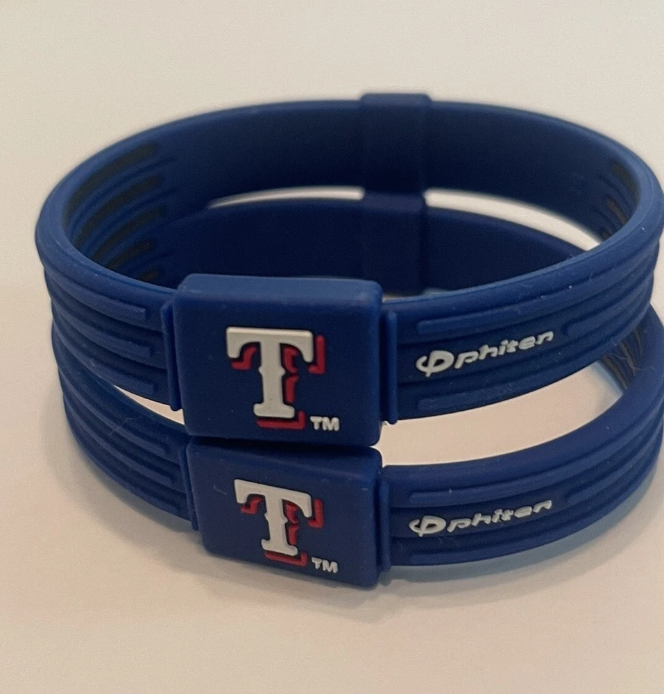 Two Medium Phiten TEXAS RANGERS bracelets.