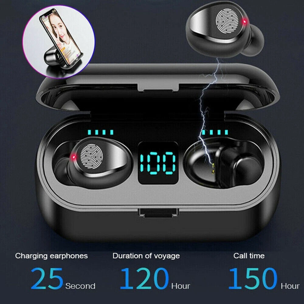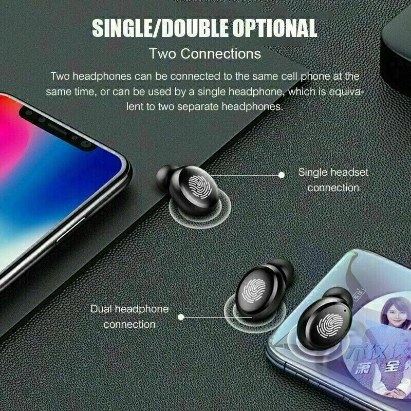 TWS Bluetooth headphone Wireless Earbuds Sporting Headset Premium Sound W/ Mic 【 Individual power display of and charging case】 : Intelligent LED display shows how much battery remain for the charging base and both . 【 Up to 90 hours play time, charge as you go】 :can play for 4 hours on a single charge. The built-in 2000mAh rechargeable battery charging case provides 90 hours of additional playback time. Lots of music enjoyment without worrying about battery life. 【Latest Bluetooth 5.1 technology, one-step pairing】 : Ensure your great experience with fast, stable and efficient transmission. 【Snug fit】 : Ergonomic designed to fit comfortably in your ears for active lifestyle,the Stereo headphones come with three adjustable ear cup sizes right from the box, you can focus on reaching new heights in your workouts. 【IPX6 waterproof】 : These true wireless headphone against damage from sweat or rain. Perfect for fitness travelling and etc. Note: the charging case is not waterproof. Lifetime warranty, If you are not satisfied with your purchase for any reasons, Please feel free to contact us at any time. Specification: Item Type: Wireless Earphones Bluetooth Version: 5.1 Support Protocol: A2DP, AVRCP, HFP, HSP, SPP Headphone Speaker: Φ8mm Headphone Battery Capacity: 50MAH Storage Box Battery Capacity: 2000MAH Transmission Distance: >10m Talk Time: 4-5 Hours Play Time: 4-5 Hours Headphone Charging Time: 1 Hour Charging Time Of Storage Box: 2 Hours Color: Black Package List: 1 * Earphones 1 * Charging Case 1 * Charging Cable 2 * Extra Rubber Earpieces 1 * User Manual On Nov 13, 2024 at 04:30:26 PST, seller added the following information: