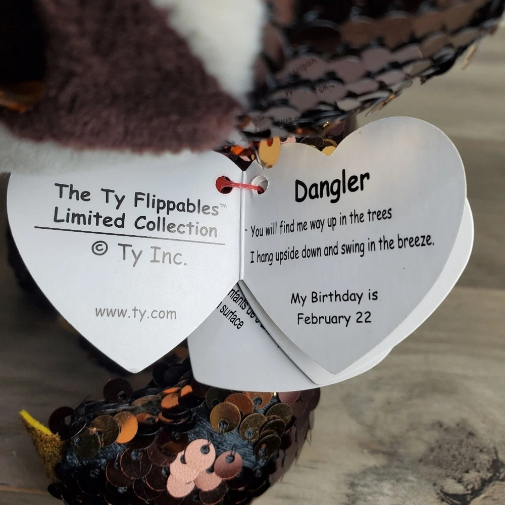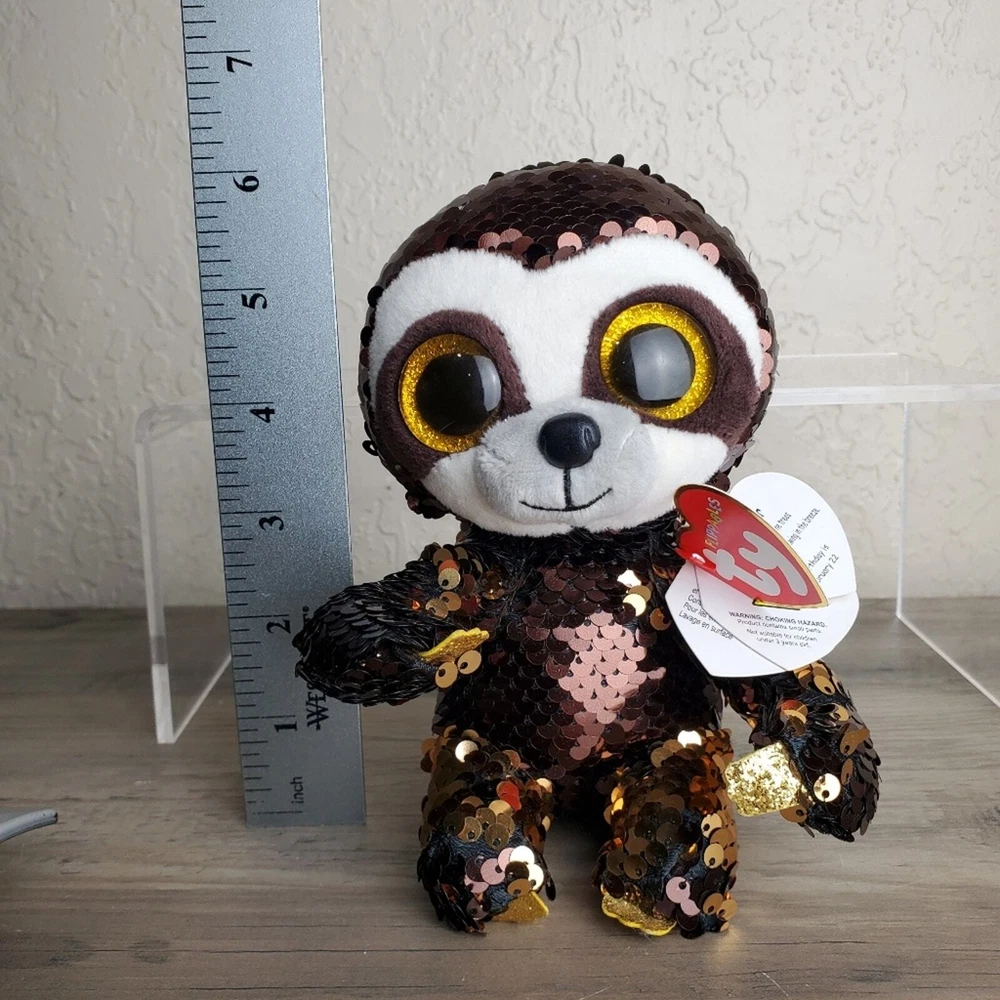 TY Flippables Limited Collection Dangler the Sloth Brown Gold Sequins Plush 6" Stuffed Animal, original tags attached, collectible, toy Reversible sequins and bright large eyes Birthday = February 22 Measurements in photos. Same day / next day shipping Offers accepted Like for price drops and deals Bundle 2 items or more and save! Thank you! 4oz