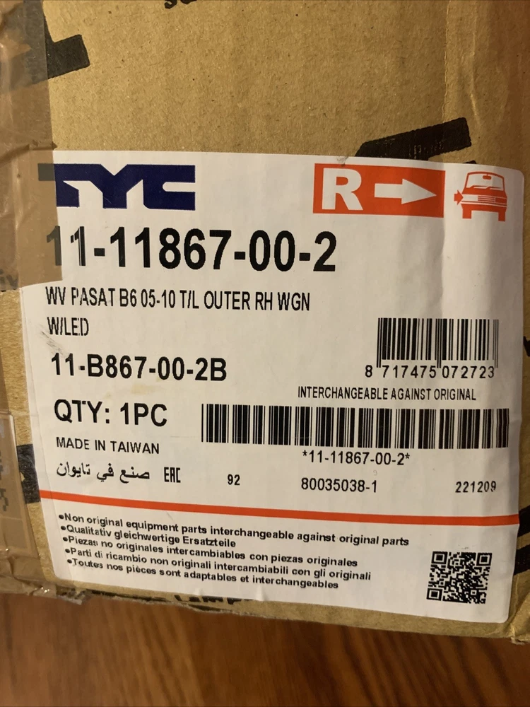 We ordered this taillight for a 2010 VW wagon, but before we were able to install it the transmission went out on the car. Just unwrapped to take photos.