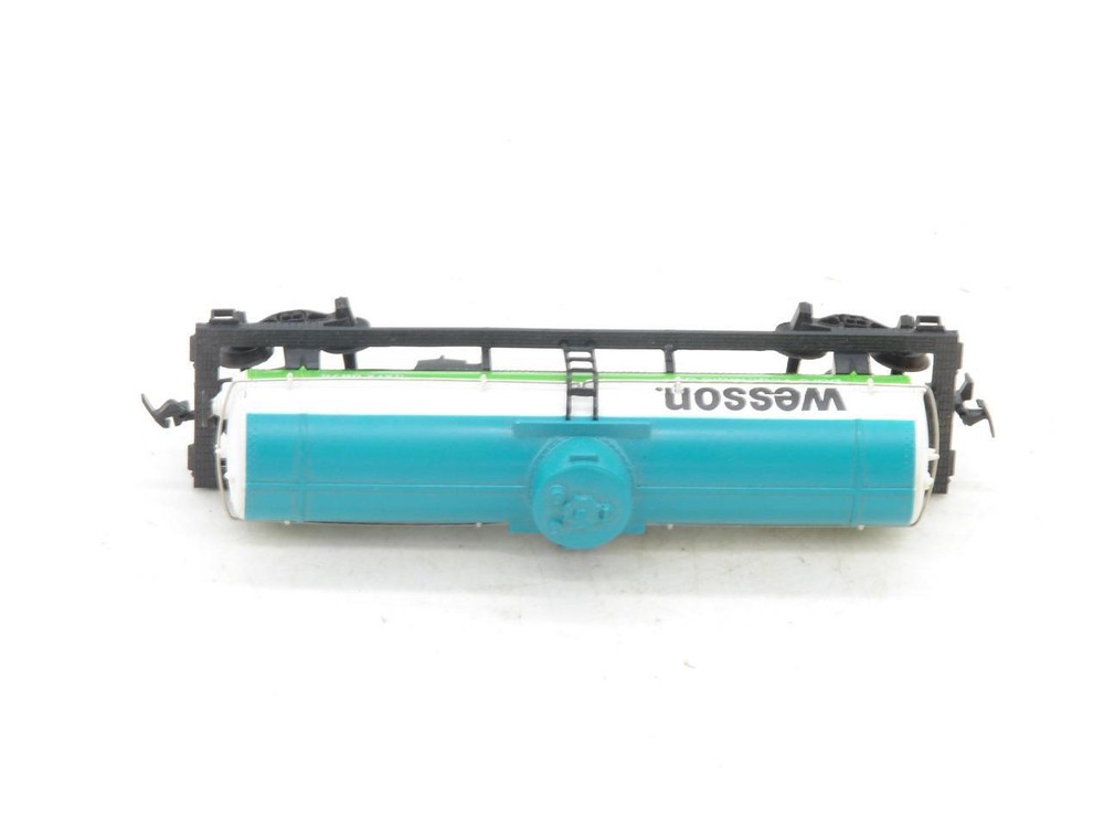 Thanks for looking. Offered, is a TYCO HO Scale 9876 Wesson Oil Tank Car. Tank car in good overall condition. Body is free of cracks, chips, and breaks. All trim including the brake wheel, railings, ladders, and steps at all four corners on the frame are intact. Wheels do show wear with brass residue present. Horn hook couplers are complete. No original box is included. Car weighs under 1 pound safely packed for shipping. I happily combine shipping. TYCO HO Scale 9876 Wesson Oil Tank Car 315K TYCO HO Scale 9876 Wesson Oil Tank Car 315K Click images to enlarge Description Thanks for looking. Offered, is a TYCO HO Scale 9876 Wesson Oil Tank Car. Tank car in good overall condition. Body is free of cracks, chips, and breaks. All trim including the brake wheel, railings, ladders, and steps at all four corners on the frame are intact. Wheels do show wear with brass residue present. Horn hook couplers are complete. No original box is included. Car weighs under 1 pound safely packed for shipping. I happily combine shipping. Please use the shopping cart to add the items you are interested in and request a total. A revised invoice with updated shipping will be sent. You can also complete checkout right away, and I will refund any overage paid. Please keep in mind that shipping charges continue to rise. I do not look to make a profit from shipping, the rates are quoted by the carrier and are passed along. Because of the increase in shipping, it is in many cases cheaper to ship 2 or more items together in the same box when you cost average things. Please look to see if there is anything else of interest that can help to lower the overall cost, especially if that other item was something you were interested in anyways. I do try to offer as many shipping options as possible to suit your needs, both as far as cost goes, and speed at which you receive an item. INTERNATIONAL SHIPPING AVAILABLE ON ALL TRAIN ITEMS. THANKS AGAIN! Payment Payments can be made by way of PayPal. Please feel free to email me with any payment questions you may have. Payments are due within 7 days of the auction(s) ending. I will extend the payment period if you are bidding on multiple items. Please let me know when you have completed bidding for items you are interested in, and are ready to receive the corrected totoal for your multi-item purchase. Please do not pay for multi-item purchases until you have received a corrected invoice total. Keep in mind this could take up to an extra day to receive your total. Shipping I happily combine shipping on all purchases. Shipping is made by way of USPS mail. You will have the choice of First Class, Parcel Post/Select, Priority Mail, or Express Mail. These choices will be based upon availabilty for the package size / weight, and destination. I try to offer every available shipping method for your purchase. International Shipping. I happily ship all train / hobby/ collectable items world wide. Please contact me for details to make sure your country does not have shipping restrictions. Please keep in mind that shipping times are estimates, and parcels may be held up by customs. International shipping is by way of USPS Mail. Your choice of First Class Package, Priority International, or Express Mail International. NOTE: First class package may not be available for large orders. International Customs Fees. Additioanl import or duties fees may be charged by your country. These potential fees are not included in the shipping paid on your purchase. Please contact your customs / duties office to check on any additional fees that could due. FEEL FREE TO CONTACT ME WITH ANY SHIPPING QUESTIONS YOU MAY HAVE. Terms of Sale Due to the nature of the items being offered for sale, purchases are considered final. Every effort is made to give as honest a review of an item being offered as possible. Since many of these items are vintage, proper operation of these items is difficult to guarantee. Most items are either bench tested, or tested on a layout prior to listing. Please feel free to contact me prior to bidding or purchasing an item if you have any additional questions you would like answered. Contact Us Please feel free to contact me with any questions you may have about an item being offered for sale. I will do my best to get back back in touch with you the same or very next day. Get images that make Supersized seem small. Showcase your items with Auctiva's Listing Templates! THE simple solution for eBay sellers. Track Page Views With Auctiva's Counter