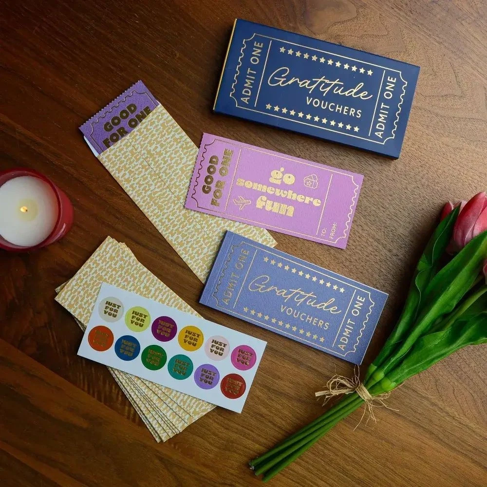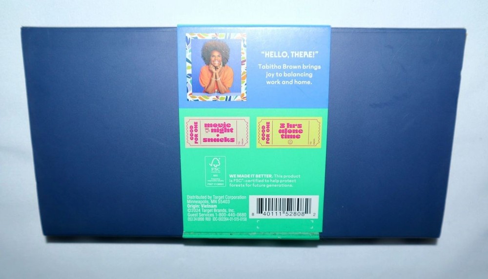 Gratitude Voucher Booklet - Tabitha Brown for Target New Gratitude voucher booklet set Includes 12 vouchers, envelopes and seals Foil accent detailing Comes with a box Forest Stewardship Council Certified Whether it's a friend, colleague or a beloved family member, let them know what you're grateful for with this Gratitude Voucher Booklet Set from Tabitha Brown for Target. This set includes 12 gratitude vouchers with fun activity messages adorned with gold foil detailing. The set also comes with 12 "Just For You" seals and envelopes to beautifully convey your messages of thanks. Please ensure you review the pictures as they form an important part of the description. Please visit our store Returns will not be accepted . However, if the item is damaged upon arrival, buyers must contact us within 3 days of delivery for any refund or replacement. Returns will not be accepted if buyers caused any damages to the item. Item must be in original packaging and not used. If there is an issue please contact us before leaving negative feedback We Thank You in Advance for Your patronage and we hope to have you back as a long term repeat customer!!