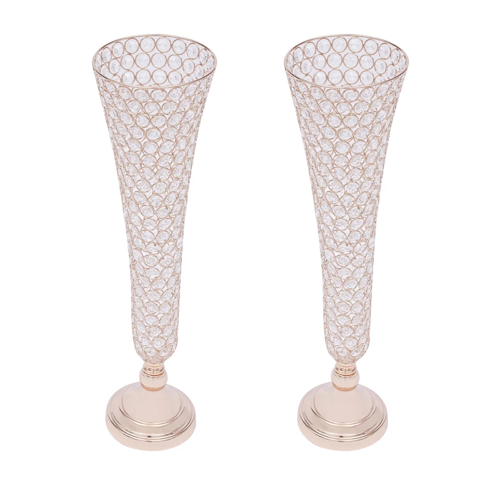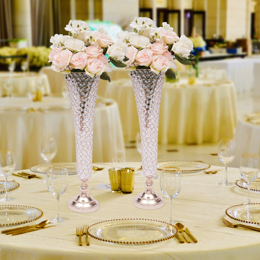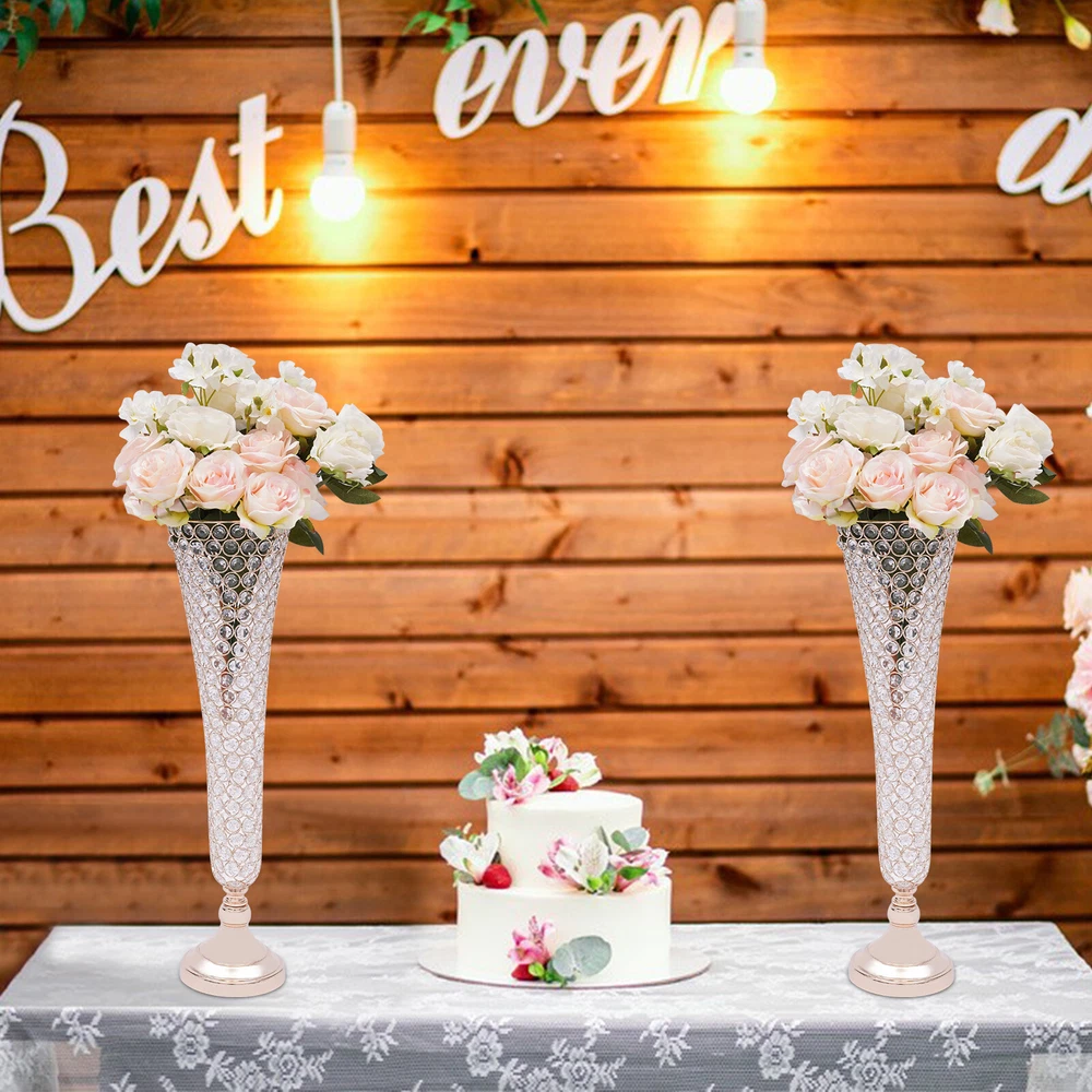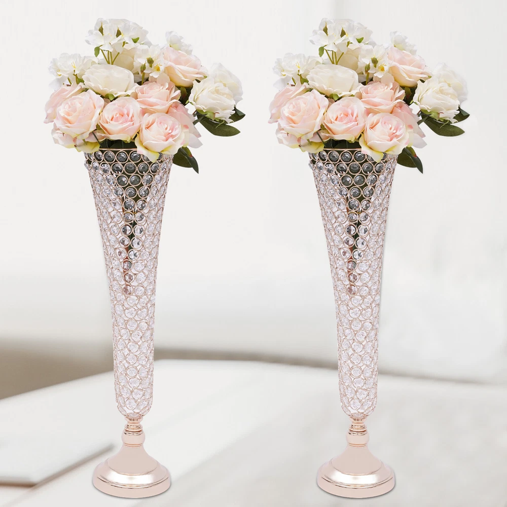 Table Decorative Centerpiece for Wedding Crystal Flower Stand for Anniversary 2 Pc Crystal Trumpet Flower Vase Wedding Stage Decoration Vases Rack 53cm Tall Description This vase is perfect for young newlyweds with personality and fashion, placed in the wedding venue to highlight the sense of fashion and art in the entire interior. Light gently sprinkles on the vase, and a burst of soft light makes the whole wedding scene more noble and elegant, adding a touch of festive and happy atmosphere to the wedding. Key Features Modern and Elegant : Each crystal trumpet floral vase is made of selected high-quality octagonal crystal beads. They still sparkle in the sunlight. It creates stunning colors and shades and is the ideal candelabra centerpiece wedding decoration. Premium Quality : It is made of high-quality iron material with an electroplated surface, so it has good weather resistance . It will not change its performance or shorten its service life due to the harsh environment. DIY Fun: You can put different decorations on the gold vase for different occasions, such as artificial flowers, fresh flowers, bouquets, feathers, etc to create your own decorations with endless imagination and elegant taste . Easy to Clean: Its electroplated smooth surface and highly clear crystal make it easier to clean. You just need to wipe it with a soft dry cloth to make it look new. Light Weight: These vases are moderate in weight (9.9lbs), allowing you to easily move to where you want to place them. Easy to Assemble: It's simple to construct and the package contains the parts needed for installation, so you only need a few simple steps to put them together. Two in a Package : The package comes with two vases that can be placed symmetrically exactly where you want them. Therefore, you don't need to buy extra, which is very affordable and convenient. Customer Service: We aim to provide quality products and services. If you have any problems, please feel free to contact us. We will reply and solve the problem for you as soon as possible. Specification Color: Gold Shape: Trumpet Style: Modern Material: Iron Surface Treatment: Electroplating Treatment Number of Pieces: 2 Use Form: Desktop, Floor-standing Product Height: 53cm/ 20.86in Opening Diameter: 17cm/ 6.69in Base Diameter: 13.5cm/ 5.31in Package Size: 49*19*25cm/ 20*7.5*10in Net Weight: 4.5kg/9.9lbs Gross Weight: 5kg/11.0lbs Package Included 2* Flare-shaped Vase Bodies 2* Bases 3* Non-slip Mats Other Accessories for Assembly Details Trumpet-shaped Opening : The mouth of the trumpet-shaped vase is propped outward with a lot of placement space, even a bouquet with larger petals like lilies can be fitted in. Crystal Bead Splicing Design: The vase is made of several finely crafted crystal beads spliced together in a natural form with a clear visible pattern. Round Base: The enlarged round base (5.31in) design makes it stable and not easy to shake and tip over. Application It can be used in everyday decoration for the kitchen, living room, bedroom, office, balcony, etc. It can also add sparkle to your wedding banquets, proms, baby showers, anniversaries, Valentine's Day and other important events. Installation 1. Connect the tooth bar with the accessories. 2. Fix the base with nuts. Notes Please note that the flowers in the picture are not included. Please allow the slight color difference caused by the shooting light and 1-3 cm error due to manual measurement, and make sure you do not mind before ordering. Payment Delivery details Terms of sales About us Contact us Payment We accept ebay payment 。 Fees such as import duties, taxes are not included in the item price or shipping costs. These charges are the buyer's responsibility. Delivery details Shipping: 2-9 working days to: USA Terms of sales We maintain high standards of excellence and strive for hundred percent customer satisfaction. Feedback is very important to us. We hope that you contact us immediately before you give neutral or negative feedback, so that we can address your concerns. It is impossible to address issues if we do not know about them! About us Your satis faction is our ultimate goal. We work hard to earn your trust and future business. Our certified technicians have tested each item before shipping. The unit comes with 1 year limited warranty on all manufacturing defects. a) If you receive a defective item, you may return it or ask for a discount. Please contact us within 14 days after you receive the package. b) What you returned must be intact and in its original packaging as re? u. Customer is responsible for shipping costs of the returned item. c) We will cover the cost of shipping back t with the shipping rate indicated in the registration page. We will send you a new unit or refund the full payment you paid. Thank you. Contact us Business Hour Business Hour: Monday To Friday: 8:30 AM to 5:00 PM (Beijing China time) Due to time zones, our reply to your questions may not be immediately. But within above working time, we will reply your email within 24 hours. If it's non-workdays, please kindly be patient and wait till Monday. Please contact us with ebay message. Please feel free to contact us if you have any questions. Monday To Friday: 8:30 AM to 5:00 PM (Beijing China time) Due to time zones, our reply to your questions may not be immediately. But within above working time, we will reply your email within 24 hours. If it's non-workdays, please kindly be patient and wait till Monday. Please contact us with ebay message. Please feel free to contact us if you have any questions. Features3 Stable characteristics, high reliability Features2 Made of high quality material, Durable Features2: Made of high quality material, Durable * Feature *: 🔥high performance🔥reliable quality🔥good stability Features3: Stable characteristics, high reliability Brand Unbranded Type Flower Vase Material Iron Shape Trumpet Theme Flowers Color Gold Style Modern Features Decorative, Smooth Department 