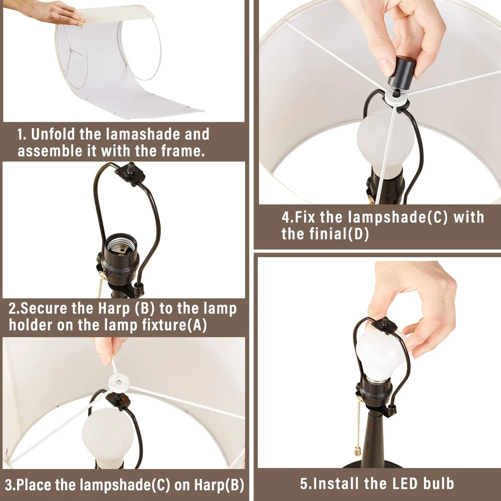 【With USB-C+A Convenient Charging Ports】This modern bedside lamps have USB-C+A charging ports, support 5V/2.1A USB charging. When you come back home or office, you can take easy to charge your phone, kindle, tablet and other electronic devices, meet your more electrical device charging needs. As long as the table lamp is plugged in,the USB port can function whether the lamp is on or off. 【LED A19 Bulbs Included】 Two A19 LED bulbs are packed with this bedside table lamp for your convenience. No more need to suffer endless comparison and hesitation to decide which bulb to buy. Compare with incandescent bulb, non-glare and non-flickering, saving up to 90% electric bill while emitting sufficient glow to illuminate a room. 【Offer 3000k Warm White Light】We offer a 3000K warm white LED, which won't burn out and its' service life up to 50,000 hours, so as to illuminate any dark place easily for your convenience. Whether you want to read, write or simply relax, the standing lamp provides ample illumination without straining the eyes. Ideal for your reading, working and relaxing. 【Minimalist Design & Eye-protection】High quality metal materials and clever cone design of these nightstand lamps no tipping and hold steadily without shaking. Designed with the vintage minimalist concept, which goes well with any style of your house. Particular design black metal body and beige lampshade make this table lamps look modern and classic, which can effectively relieve eye fatigue and protect the eyesight. 【Shop Your Lamp Anytime】 If there is any damage caused by transportation, or if you have any question or problem about this table lamp, or you just don't like it, please contact us anytime through Amazon message and we will get back to you within 24 hours.