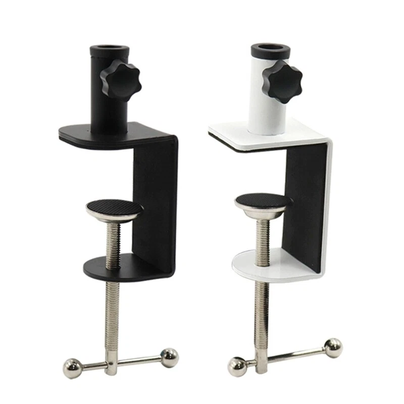 Features: It can easily clip to any desktop up to 2.36in/6cm thickness; Suitable for any stores, families, stage, studios, broadcasting. Soft sponge padding for at the contact point with table protects table from any scratches. The base is made of hight quality metal which is durable and sturdy; The thick metal makes the base of stand stable and not easy to break. Specifications: Material:Metal Color:Black,White;(Optional) Size:Approx.140x65mm/5.51x2.56in Clamping Thickness:Suitable for up to 2.36in/6cm thickness desk. Package Includes: 1x Table Mounting Clamp note: Please allow 1-2cm errors due to manual measurement,pls make sure that you do not mind before you order. Due to the difference between different monitors, the picture may not reflect the actual color of the item.