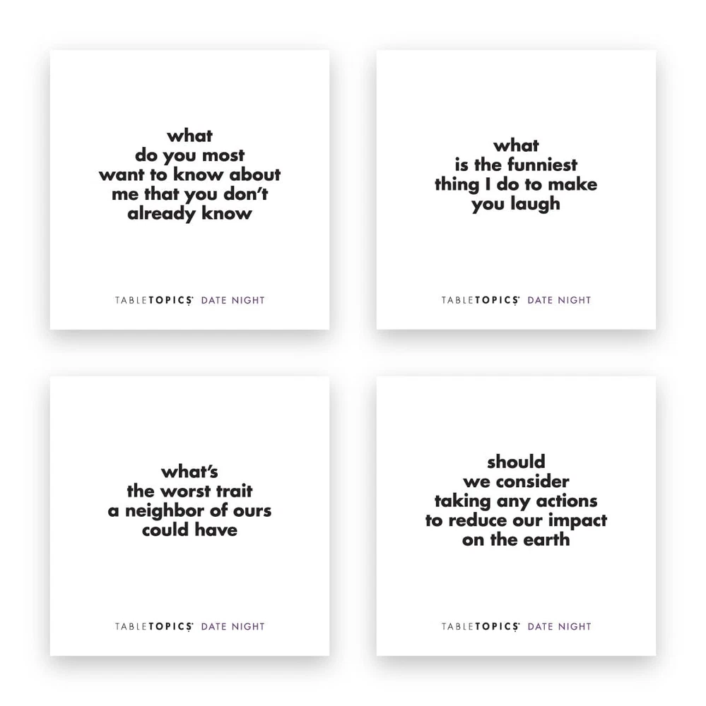 For All Couples: Discover new things about your partner with Date Night conversation cards, whether you are a new couple or even after years together. Enjoy Quality Time: Use these conversation cards during dinner dates, on anniversaries, or special occasions like Valentine’s Day. It’s an easy and enjoyable way to stay connected and communicate. Deepen Your Connection: Explore these thoughtful questions with your partner to inspire genuine, meaningful conversations. You’ll enjoy learning more about each other and enhance your understanding of one another. Focus on Each Other: Date Night questions provide a simple yet meaningful bonding experience, encouraging you to put away phones and focus on each other. Gift Idea: TableTopics Date Night is a thoughtful and enjoyable gift, particularly for weddings, anniversaries, or Valentine’s Day.
