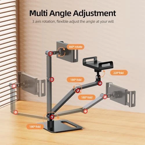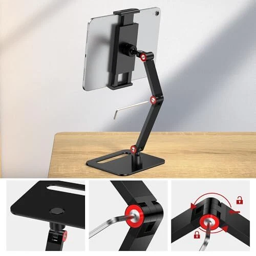 Tablet Stand for Desk, Adjustable 360° Swivel Bracket, 180° Tiltable Clamp