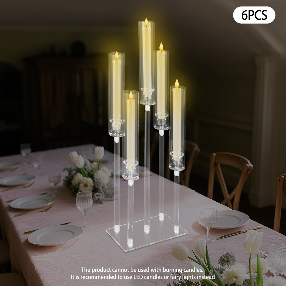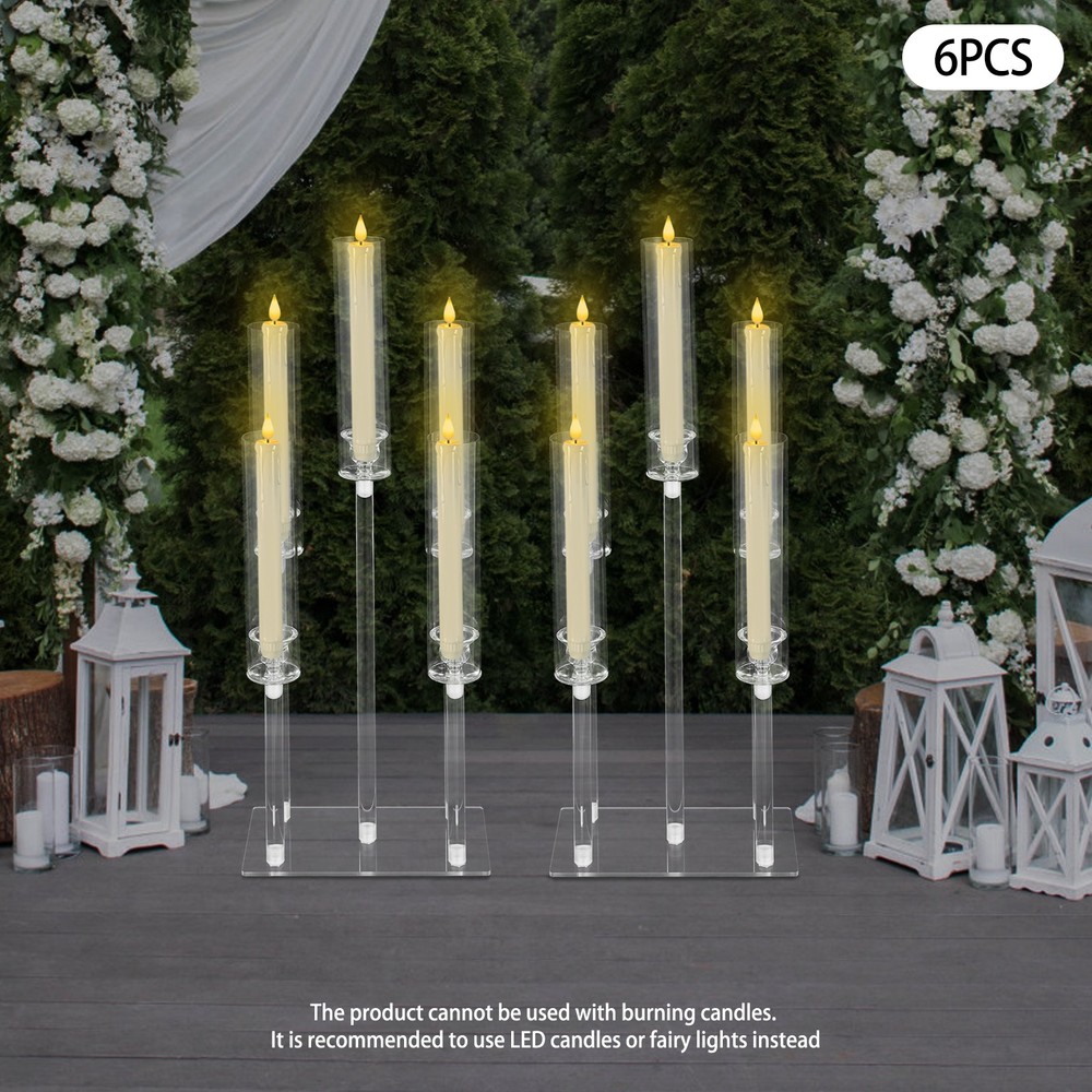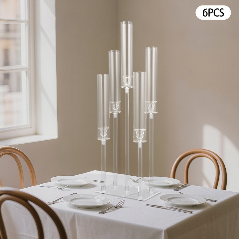 Specifications Style: Modern Color: Clear Material: Acrylic Base Shape: Rectangular Mount Type: Tabletop Assembly Required: Yes Number of Items: 6 Number of Candle Holders Per Product: 5 Gross Weight: 6.2kg/13.67 lbs Net Weight: 4.5kg/9.92 lbs Each Candle Holder Size(D*H): 5*25cm/1.97*9.84in Each Product Size: 24*12*68cm/9.45*4.72*26.77in Package Size: 61*26*22cm/24.02*10.24*8.66in Package Included 6* Candle Holders 1* English Installation Instruction All Accessories for Assembly Tabletop Candle Holder, Wedding & Party Centerpiece Decor Candle Holder Welcom Description Romance isn't just an attitude—it's a beautiful way to elevate everyday living. Imagine transforming your space into a haven of warmth and intimacy with our exquisite candle holder. Whether it's a candlelit dinner, a softly glowing ambiance for a quiet evening, or a romantic setting to share with your loved one or family, this is the ideal way to embrace those cherished moments. Don’t miss the chance—bring this touch of elegance and romance into your home today! Key Features Warm Atmosphere: When you light the candle(not included) at night, the flickering candlelight creates a warm and romantic atmosphere, making your room poetic and serene. User Friendly: Meticulously crafted with protective covers to safely nestle candles (not included) and minimize the risk of accidental tipping, this candle holder boasts a thoughtfully engineered removable structure that simplifies candle replacement and cleaning. Elegance Embodied: Showcasing 5 acrylic candle holders with a sleek rectangular foundation, this candle holder delivers a mesmerizing display through its varying heights and softly glowing LED lights(not included), crafting a dreamy and alluring atmosphere. DIY in a Breeze: The 6-piece set lets you get creative—use them together for a striking centerpiece or split them up to brighten different spots. They go well with flowers and other romantic decor(not included), making it easy to style for most occasions. Setup Simplified: A comprehensive kit paired with intuitive assembly ensures you can put it up quickly — enjoy easy installation that turns setup into an ideal start. Details Unique Column: The slender column is sculpted for comfort, offering a secure yet refined hold that marries functionality with elegance. Stable Base: The rectangular base offers unwavering stability while safeguarding your tabletop from scratches — an ideal blend of security, durability, and thoughtful design. Application It holds electronic candles, or fairy lights, etc., up to 1.97 inches in diameter. It can be placed in living rooms, reading rooms, bedrooms, corridors, foyers, patios, terraces, stairs, and other places, filling your home with a warm and romantic atmosphere. What's more, it is also suitable for weddings, engagements, dinners, birthdays, family gatherings, or other formal events. Specifications Style: Modern Color: Clear Material: Acrylic Base Shape: Rectangular Mount Type: Tabletop Assembly Required: Yes Number of Items: 6 Number of Candle Holders Per Product: 5 Gross Weight: 6.2kg/13.67 lbs Net Weight: 4.5kg/9.92 lbs Each Candle Holder Size(D*H): 5*25cm/1.97*9.84in Each Product Size: 24*12*68cm/9.45*4.72*26.77in Package Size: 61*26*22cm/24.02*10.24*8.66in Package Included 6* Candle Holders 1* English Installation Instruction All Accessories for Assembly Notes Please carefully check if the size is suitable before placing an order. The product cannot be used with burning candles. It is recommended to use LED candles or fairy lights(not included) instead. Please note that both sides of the acrylic sheet are covered with protective film. Please remove the protective film before use. Please allow the slight color difference caused by the shooting light and a 1-3cm error due to manual measurement, and make sure you do not mind before you order. Payment Delivery details Terms of sales About us Contact us Payment We accept ebay payment 。 Fees such as import duties, taxes are not included in the item price or shipping costs. These charges are the buyer's responsibility. Delivery details Shipping: 2-9 working days to: USA Terms of sales We maintain high standards of excellence and strive for hundred percent customer satisfaction. Feedback is very important to us. We hope that you contact us immediately before you give neutral or negative feedback, so that we can address your concerns. It is impossible to address issues if we do not know about them! About us Your satis faction is our ultimate goal. We work hard to earn your trust and future business. Our certified technicians have tested each item before shipping. The unit comes with 1 year limited warranty on all manufacturing defects. a) If you receive a defective item, you may return it or ask for a discount. Please contact us within 14 days after you receive the package. b) What you returned must be intact and in its original packaging as re? u. Customer is responsible for shipping costs of the returned item. c) We will cover the cost of shipping back t with the shipping rate indicated in the registration page. We will send you a new unit or refund the full payment you paid. Thank you. Contact us Business Hour Business Hour: Monday To Friday: 8:30 AM to 5:00 PM (Beijing China time) Due to time zones, our reply to your questions may not be immediately. But within above working time, we will reply your email within 24 hours. If it's non-workdays, please kindly be patient and wait till Monday. Please contact us with ebay message. Please feel free to contact us if you have any questions. Monday To Friday: 8:30 AM to 5:00 PM (Beijing China time) Due to time zones, our reply to your questions may not be immediately. But within above working time, we will reply your email within 24 hours. If it's non-workdays, please kindly be patient and wait till Monday. Please contact us with ebay message. Please feel free to contact us if you have any questions. Type n/a Brand Unbranded Style M