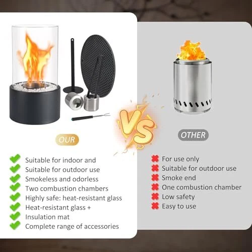 Menu 1. We require immediate payment. 2. We currently accept payment via eBay managed payments only. 3. Once payment is cleared, we will dispatch your shipment within 1-3 business days. Please refer to the "Shipping" tab for more information regarding shipping speed to your destination. Tabletop Fire Pit, Indoor Outdoor Portable Tabletop Fireplace, Ethanol Table Top Firepit with 2 Combustion Chambers, Clips, Forks, Insulation Pad, 3H Burning Time, Tabletop Fireplace for Home Balcony Product description ?PRACTICAL AND ROMANTIC: This tabletop fire pit combines the warmth of a traditional fire pit with the convenience of modern technology, providing people with a practical and ornamental heating method. Used in spring, autumn and winter, it provides warmth while creating a Warm and romantic atmosp. Ideal for outdoor use on terraces, balconies, loggias, gardens, garden sheds, party cabins, etc. and also for indoor use in living rooms, dining rooms, kitchens, bathrooms, etc ?QUALITY MATERIALS: This table top firepit is well constructed and durable, using stainless steel and special fire-resistant borosilicate glass. Featuring a sleek, modern design, flames dance behind clear, heat-resistant glass for a cozy campfire effect. The size of the tabletop fireplace is 6.5*10.5 inches, portable and compact design, and the burning time is about 1 hour when full of fuel ?SIMPLE AND SAFE: The ethanol table top fire bowl changes burners in 10 seconds. Simply remove the used empty bottle, insert the new refill tank/burner and you're done. The whole process does not require contact with heating parts, making it very convenient and safe to use. The unique one-piece base design prevents decorative materials from entering under the glass cylinder, ensuring that the glass cylinder stands firmly ?PURE EASY ENJOYMENT: The tabletop fireplace can be easily lit and extinguished, saying goodbye to the tedious work of hauling firewood or wires. Using first-class bioethanol ensures a nearly traceless, smokeless and odorless combustion process, allowing you to enjoy the atmosp of a real fire without worrying about melting wax, smoke, soot and ash ?COMPLETE PACKAGE: Our tabletop fire bowl pot comes with 2 burner chambers (canisters), 1 stove, 1 stainless steel tongs for replacing the burners, 1 anti-scald insulation pad, 1 clip and instructions. This portable tabletop fireplace can also be a gift for your romantic friends and family PLEASE MESSAGE US IF YOU HAVE ANY OTHER QUESTIONS, AND MANY THANKS FOR READING ALL OF THIS. Copyright ©#. All Rights Reserved.