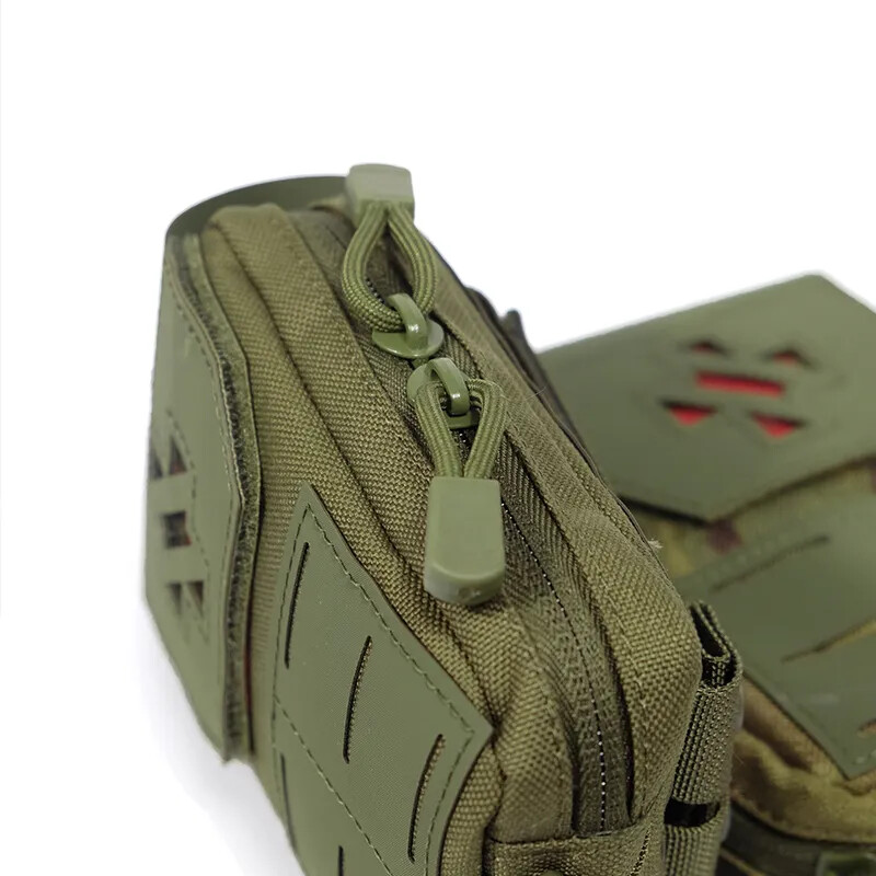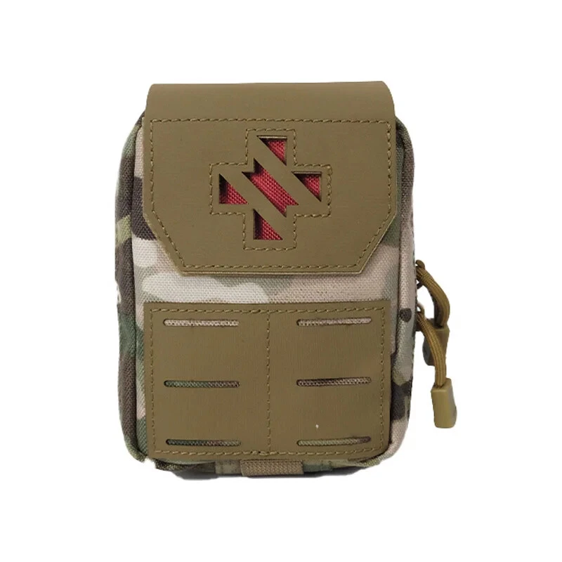 Product Details: Size: 15*13CM Featuire: 2023 Newest design first aid EDC medical pouch Feature 1: laser molle system & 1000D quality material Feature 2: back snap design for waist belt . portable & comvenient