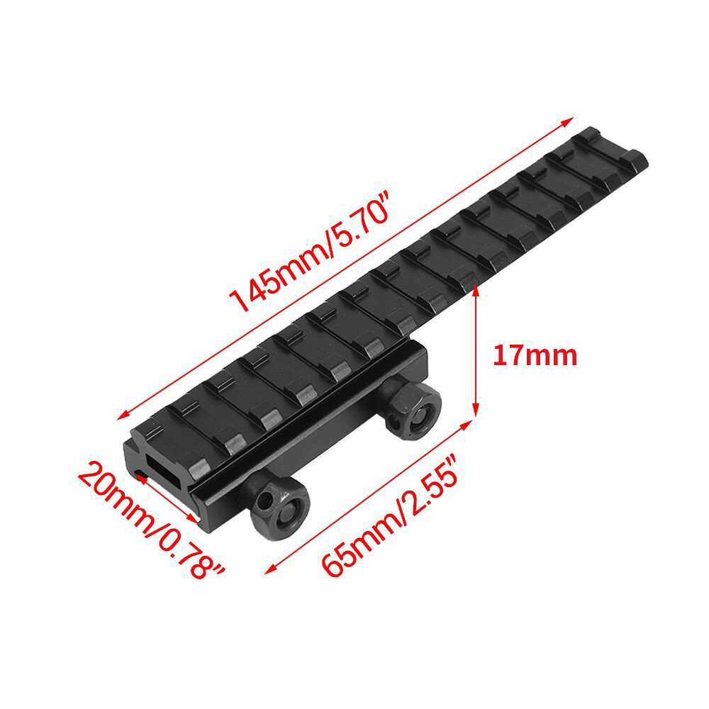 Meinuousa Your Best Online Business Partner Tactical Extension Rail Mount Riser Base Converter f/ 20mm Picatinny/Weaver Rail Feature 1/2" Profile Extended Riser Mount ,Picatinny Rail ,14 Slots , Total length 145 mm/ 5.71". Quick Detachable Design allow instant attach & detach action. Full Metal Construction. See Through design allows the users to see the iron sights when mounted. Length: Approx. 145mm (Approx 5.71inch). Height: 18mm (Approx 0.71inch). Rail Width: 20mm (Approx 0.79inch), Base width: 20mm (Approx 0.79inch). Specification Type: 145mm Scope Riser Mount Base Material: Aluminum Alloy Color: Black Weight: 80g Length: Approx. 145mm (Approx 5.71inch) Height: 18mm (Approx 0.71inch) Rail Width: 20mm (Approx 0.79inch) Base width: 20mm (Approx 0.79inch) Package Include: 1*145mm Scope Riser Mount Base 1*Allen Wrench Payment Shipping Returns Contact Us About US - We accept the payment through :Credit, debit, and gift cards, Apple Pay, Google Pay, PayPal, and PayPal Credit. - Payment must be fulfilled within 4 days after the end of auction. - Please make sure your ebay address is correct. Or not, please correct it before payment. - If you are a big customer, Please contact with us about the item's PRICE and SHIPPING. - Your feedback & suggestion is deeply appreciated, thanks. 1. Please make sure your address in ebay is correct. 2. We will only follow your address listed in the ebay orders for the shipment. 1. We can exchange the item within 30 days after you received it if it is defective. 2. Returned item must have all original packaging and accessories. 3. Buyer are responsible for the returning shipping costs. 1. We greatly appreciate your POSITIVE feedback. 2. Negative or Neutral feedback does not resolve any underlying issues that you may be experiencing as a buyer. 3. Any question or unsatisfaction please contact us with ebay message, we will sincerely solve for you. Feedback is very important to us, if you are satisfied with us, please leave us 5 star positive feedback to us. If you h have any problem, please contact us first BEFORE you give us neutral or negative feedback, so we can try our best to help you solve your problem. All rights reserved.